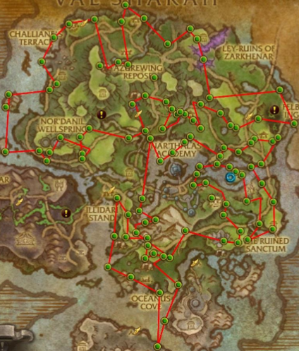 Voici une carte des points recensés par de nombreux joueurs, avec un tracé possible, si vous êtes très motivé.