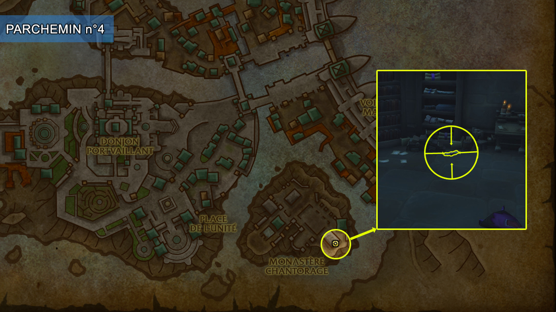 Le quatrième parchemin au Monastère Chantorage est localisé au sous-sols dans une cave dans la partie sud est aux coordonnées