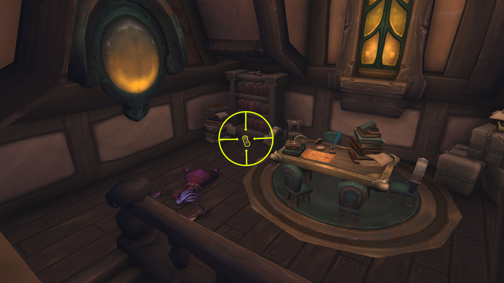 Gemme d'acquiescement dans Battle for Azeroth, cette petite aventure se déroule sur l'île du Monastère Chantorage située au sud de Boralus dans la rade de Tiragarde pour les deux factions. Ce Monastère est conservé par plusieurs gardes hostiles de la maison Chantorage avec une histoire particulière qui suit les événements de la vallée Chantorage. Les eaugures sont étrangement fascinés par les tentacules et la magie du Vide et ce jouet avait un lien avec cette petite énigme.