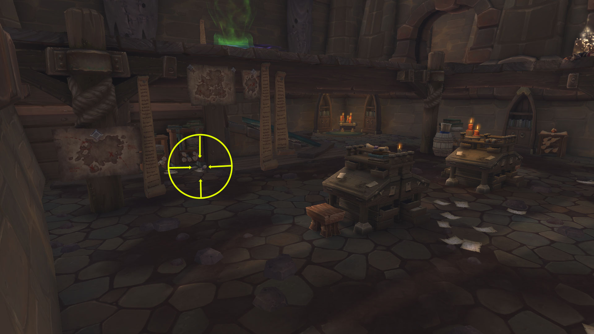 70.1 85.4, à l'opposé du deuxième parchemin. Après avoir descendu les escaliers de cette cave, encore une fois, un occultiste k'thir vous attend de pied ferme. Ce nouveau parchemin est situé entre les quatre bibliothèque à gauche de l'établi de travail.
