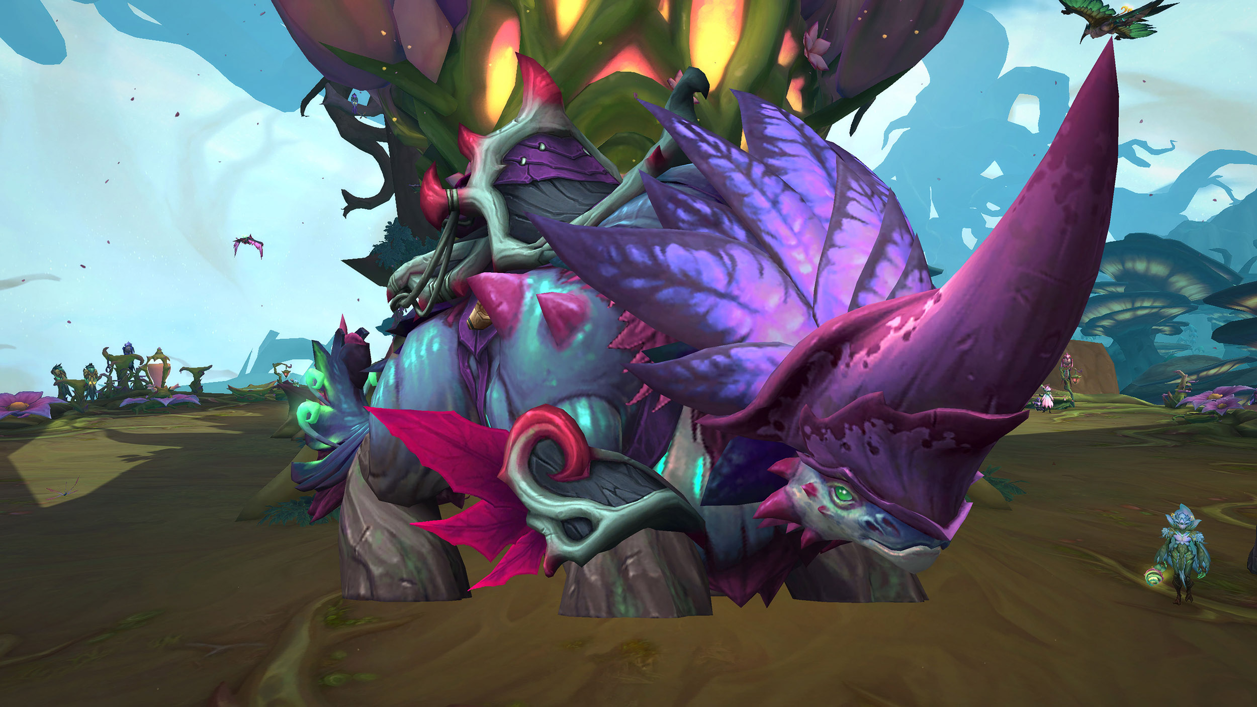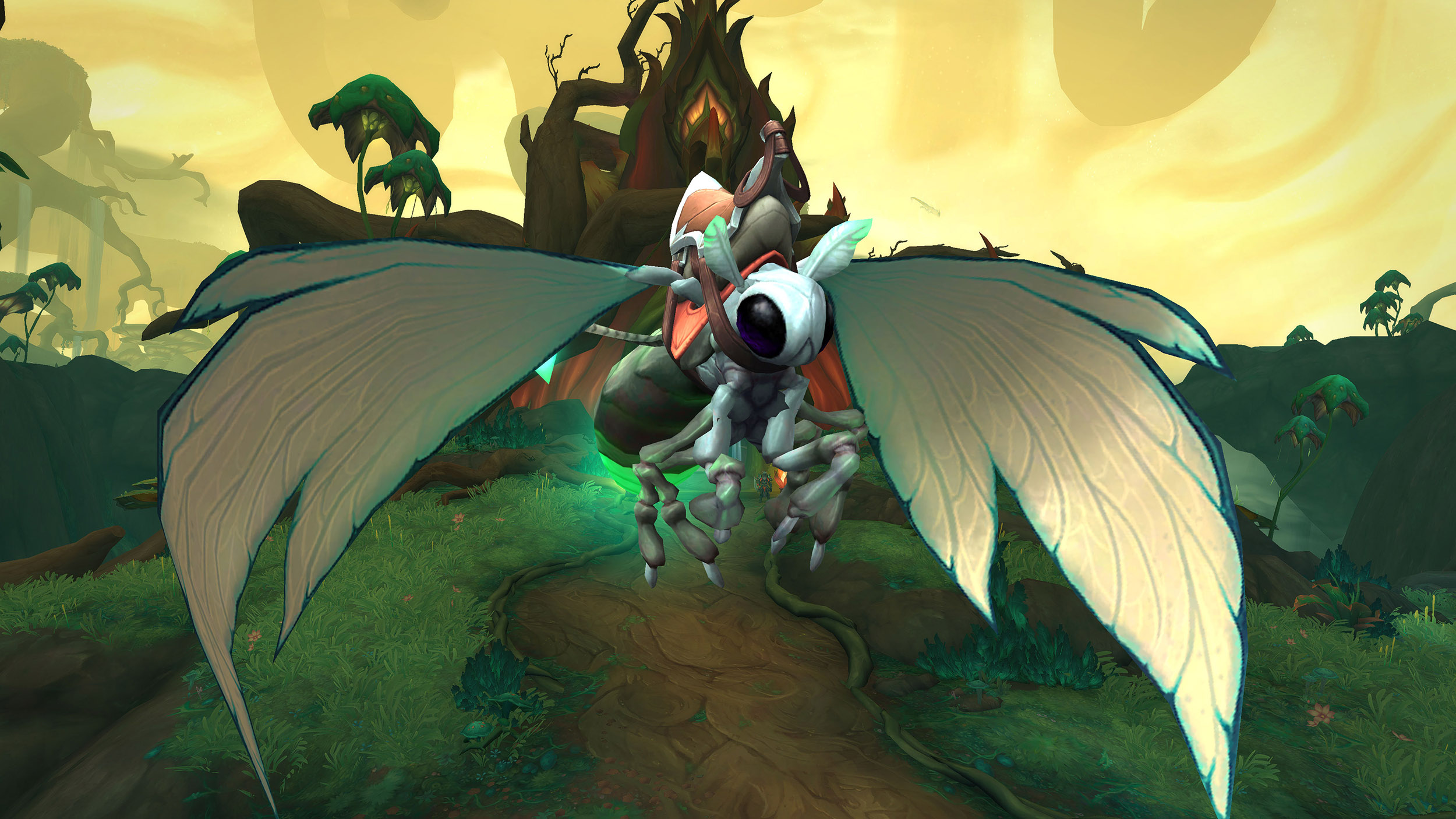 Les profondeurs fleurissantes en Harandar contient plusieurs coffres aux trésors dissimulés entre les racines des Arbres-Mondes. La progression du niveau de renom à la réputation des Hara'ti permet de débloquer le bonus « Chasse aux gros phalènes » pour débusquer les groupes de phalènes en Harandar. Les phalènes sont considérés comme un petit coffre aux trésors à capturer pour obtenir une monnaie d'échange. La poussière lumineuse permet d'acheter plusieurs récompenses à la garde-phalène Wew'tam à la Tanière : montures, éléments de décoration et apparences d'arme.