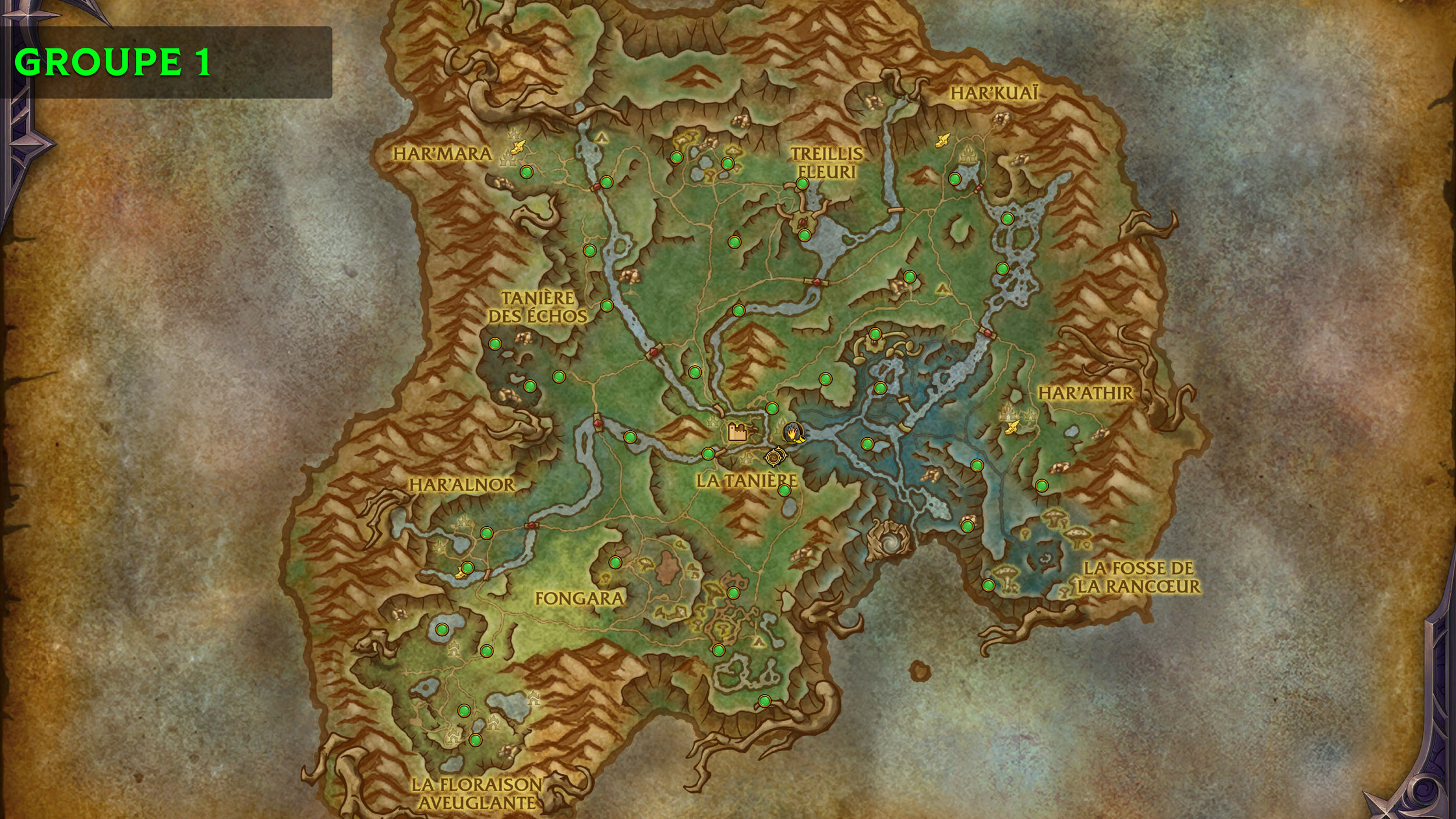 - Groupe 1 : un groupe de 40 phalènes est visible au renom 1 à la réputation des Hara'ti (renom 2 requis sur la mini-carte).