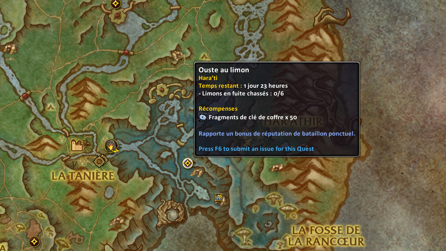 - Activer le mode guerre pour accepter une quête mensuelle pour Harandar.(250 réputation)