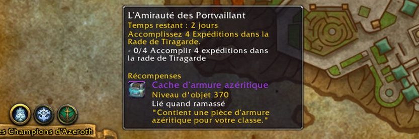 - Les personnages en-dessous de 370 de niveau d'objet obtiennent une cache d'armure azéritique avec 355 niveau d'objet
