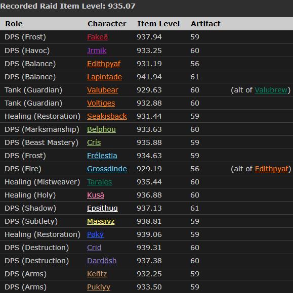 Voici la composition de raid utilisée pour cette première défaite de Kil'jaeden :