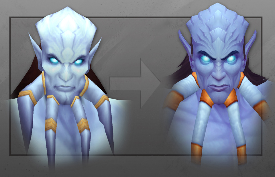 Bienvenue dans ce nouvel article d’Artcraft ! Ici Chris Robinson, directeur artistique sur World of Warcraft. Cette édition sera une nouvelle fois assez courte, mais riche en nouveautés ! Nous allons vous présenter aujourd’hui notre travail sur le modèle masculin draeneï. Le modèle d’origine étant l’un des plus réussis du jeu, nous n’avons pas eu besoin de l’adapter outre mesure. Cependant, des textures de meilleure qualité et un nombre plus élevé de polygones nous ont permis d’affiner sa définition et de transmettre une plus grande palette d’émotions grâce à une nouvelle animation.