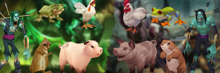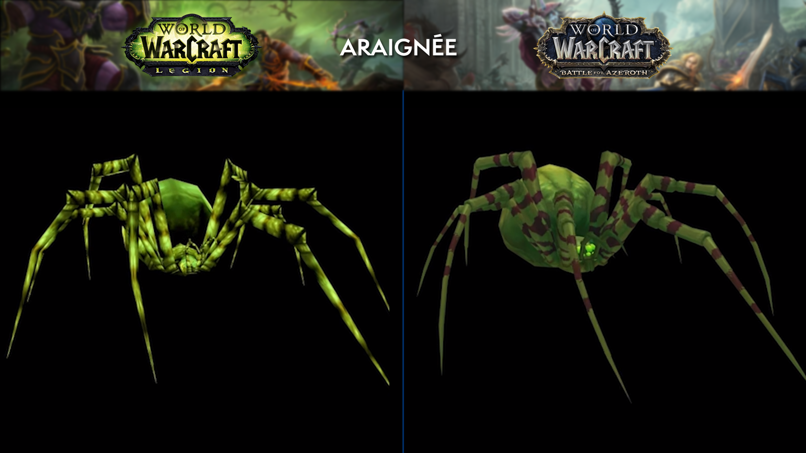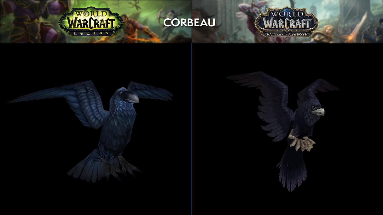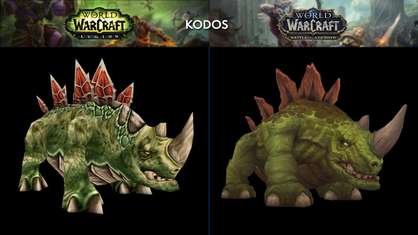 Depuis l'extension Warlords of Draenor, les modèles de World of Warcraft ont toujours été améliorés avec plus de détails pour une version adaptée avec la technologie actuelle. Dans « Battle for Azeroth », les modèles des anciennes créatures ont reçu une refonte graphique puisqu'elle concerne principalement les créatures d'Azeroth. L'environnement du jeu sera amélioré par ces 25 nouveaux modèles comme les chats, chevaux, cochons, gorilles, grenouilles, kodos, poulets et bien plus encore... On vous propose de découvrir la comparaison avec l'ancien et le nouveau modèle ainsi que les diverses variations de couleurs dans notre aperçu.