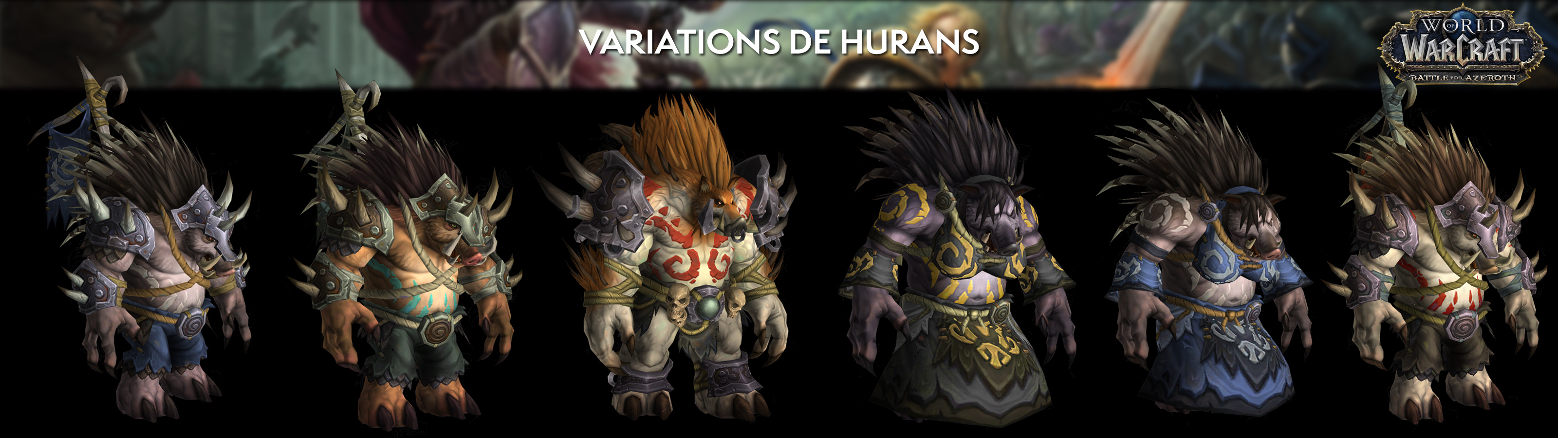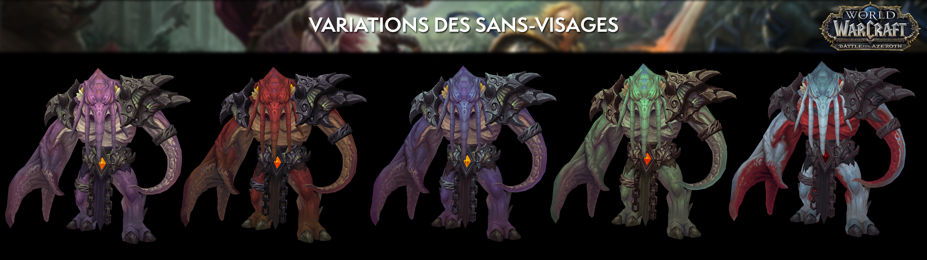 Vous pouvez accéder à chacune des parties des 25 nouveaux modèles de Battle for Azeroth avec les variations de couleur :