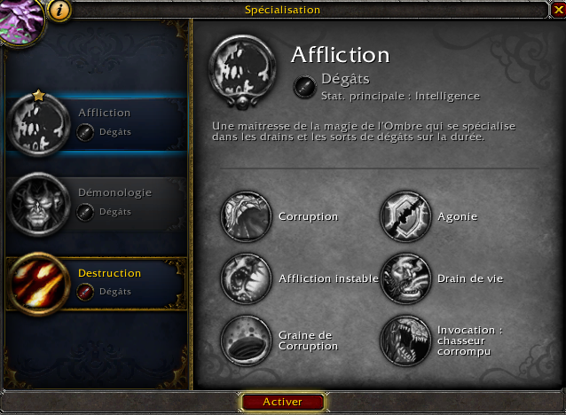 - Le changement de talents sera plus restrictif : un composant de calligraphe sera nécessaire pour changer de talents puisque dans la bêta de Legion actuellement, il était trop simple de changer de talents entre deux packs en donjons entraînant une manipulation dans les interfaces trop complexes et rapides.