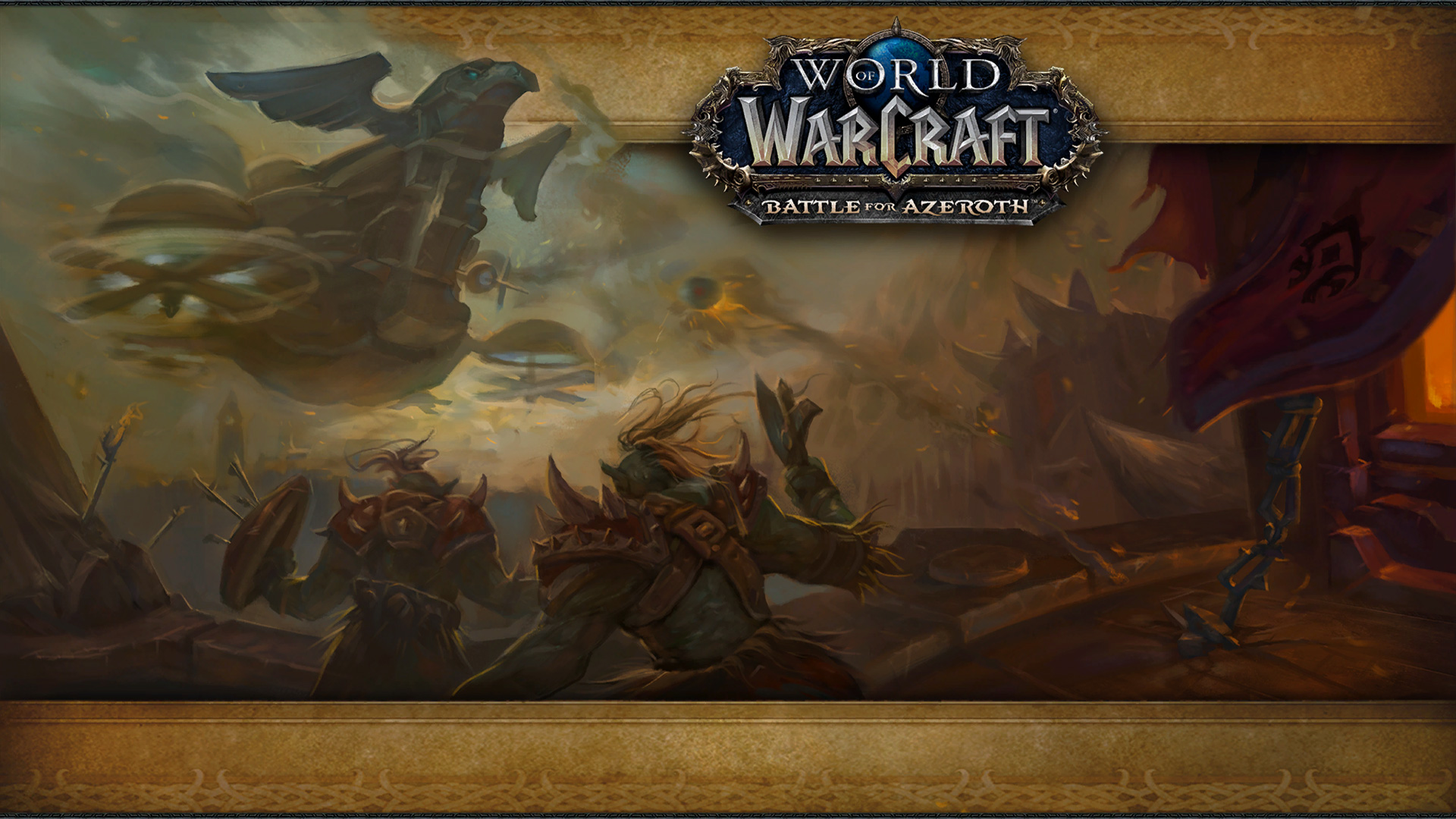 Trois écran de chargements sont proposés avec les fronts de guerre dans les Hautes-terres d'Arathi, le donjon au Sanctuaire des tempêtes à la Vallée chantorage sur Kul Tiras ainsi que l'arène JcJ de Zuldazar.