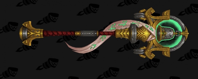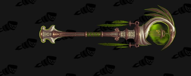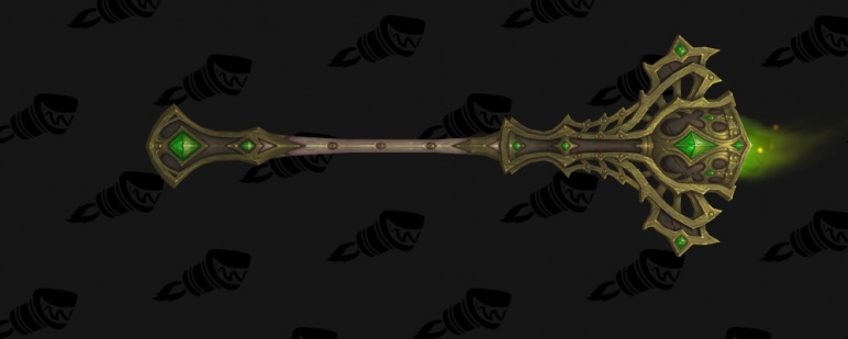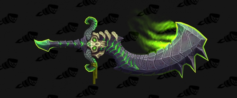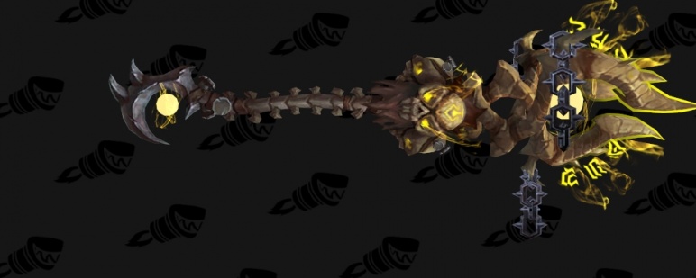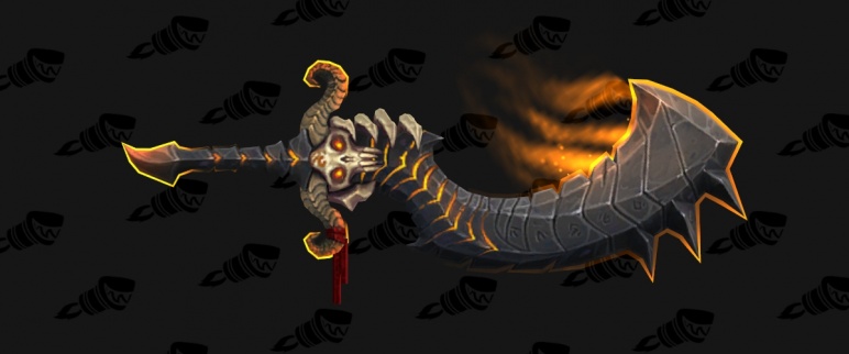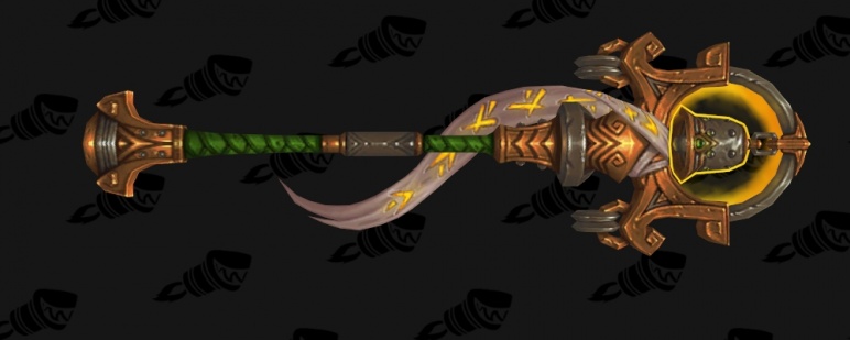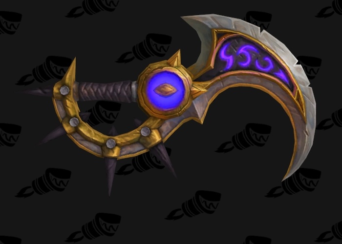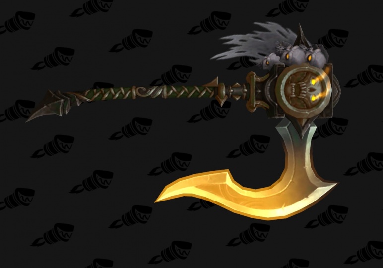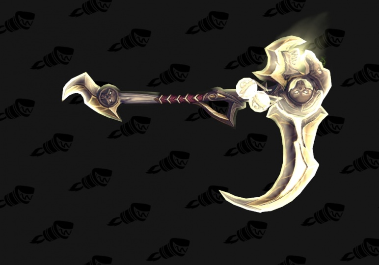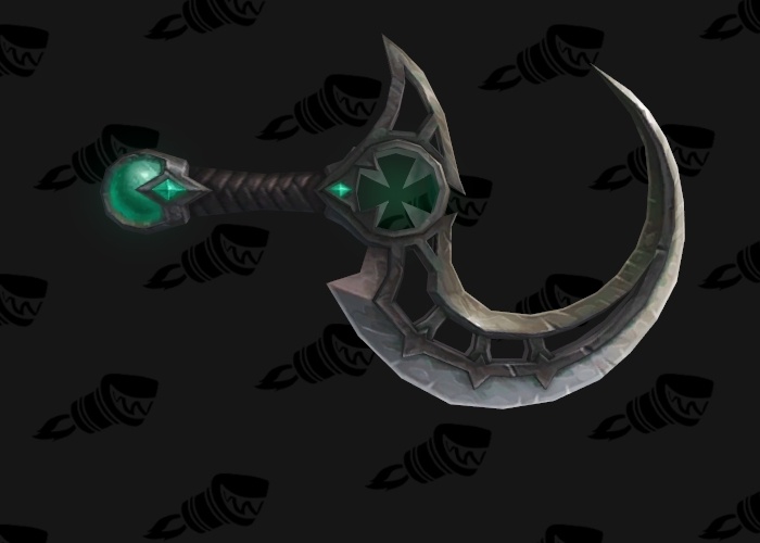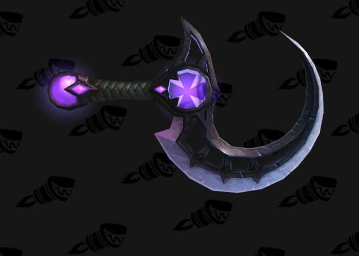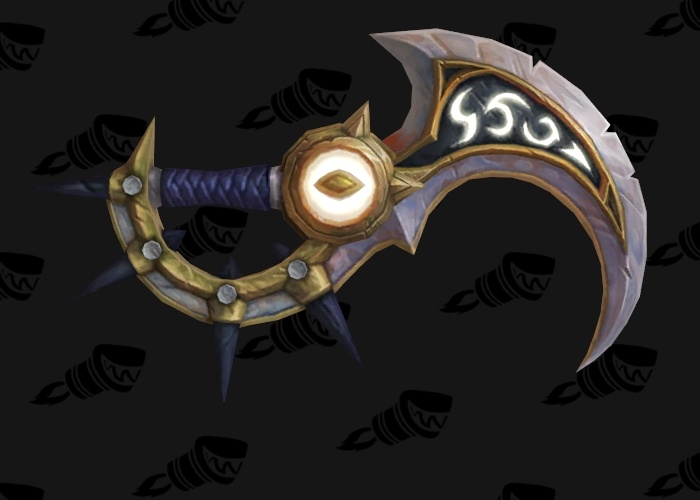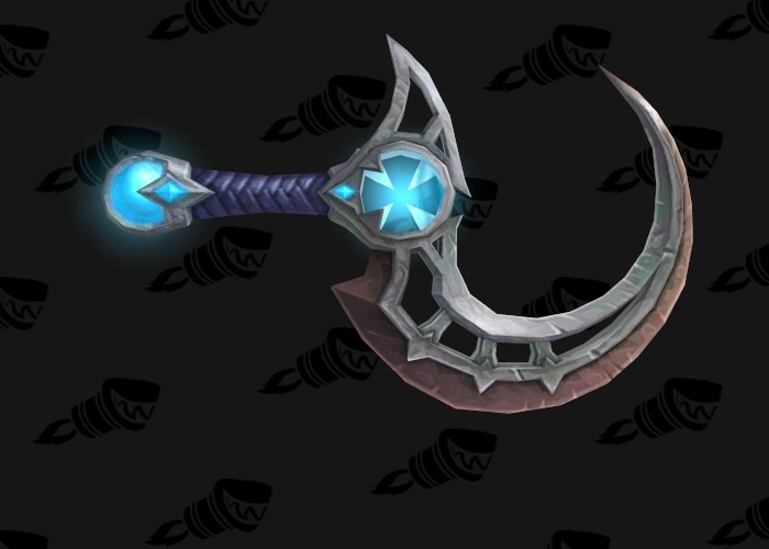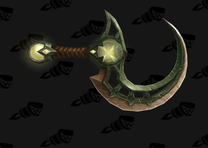 Cette mystique arme prodigieuse fut créée il y a des millénaires à partir du bâton d’Élune et d’un croc du demi-dieu loup Goldrinn. Elle est au cœur d’une histoire longue et trouble pour les druides : ceux qui la brandissent imprudemment peuvent succomber à l’esprit de Goldrinn qu’elle abrite. On raconte que la faux, qui est liée à l’origine des worgens sur Azeroth, apportera une puissance lunaire sans égale au druide possédant l’équilibre suffisant pour en conserver la maîtrise.