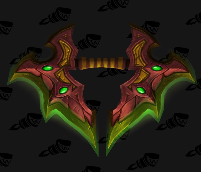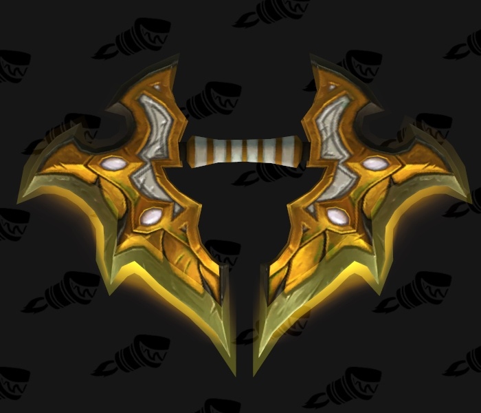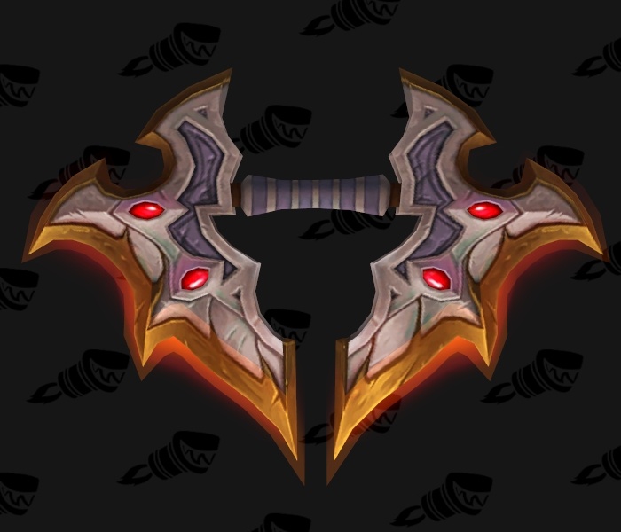 Gueulétripe le Dévoreur, molosse personnel de Sargeras, faucha d’innombrables âmes avant d’être finalement victime d’une embuscade dans un monde lointain. Après sa mort, Mephistroph fit sculpter dans ses crocs deux puissantes dagues encore saturées de la redoutable essence de flétrissement qui conférait leur dangerosité aux morsures de Gueulétripe. Ces dagues furent remises à Akaari, l’un des plus funestes assassins de Sargeras, qui les porte aujourd’hui encore.
