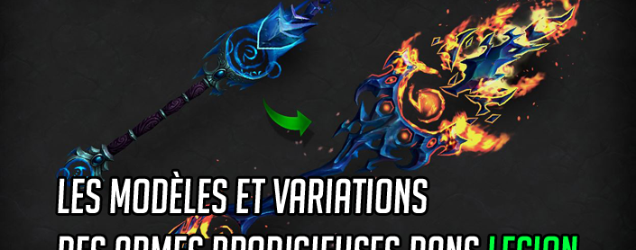 Dans Legion, les armes prodigieuses seront notre plus fidèle compagnon à travers toute l'extension pour chacune des classes et spécialisations, et celles-ci vont prendre davantage de puissance avec l'arbre de talents qui permet de débloquer de nouveaux passifs et sorts grâce aux points prodigieux. Chacune des armes disposent de cinq modèles différents avec quatre variations de couleurs, ce qui nous amène à 20 armes différentes par spécialisation avec des mains gauches parfois disponibles qui sont débloqués via des hauts-faits où d'autres activités. Nous compléterons prochainement avec toutes les vidéos des armes prodigieuses de chacune des spécialisations.
