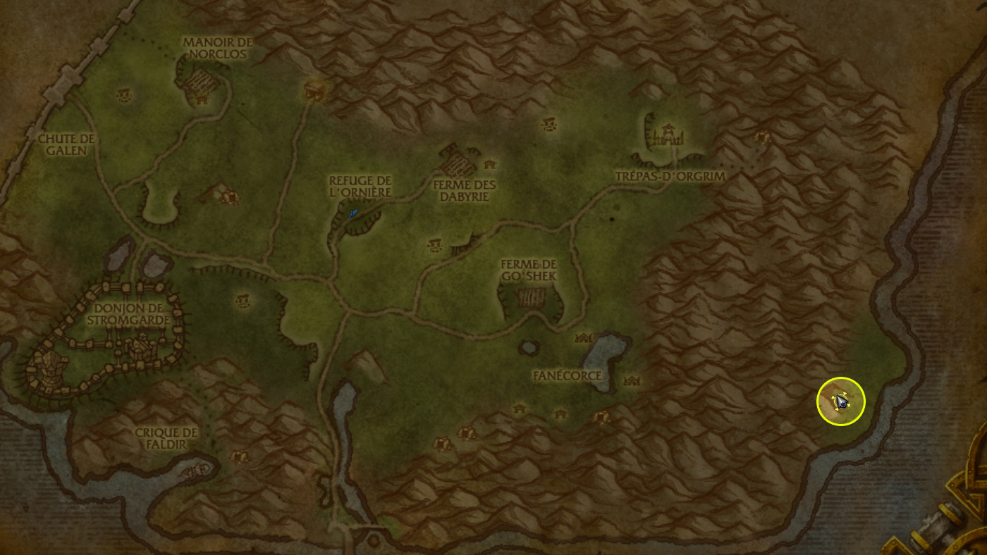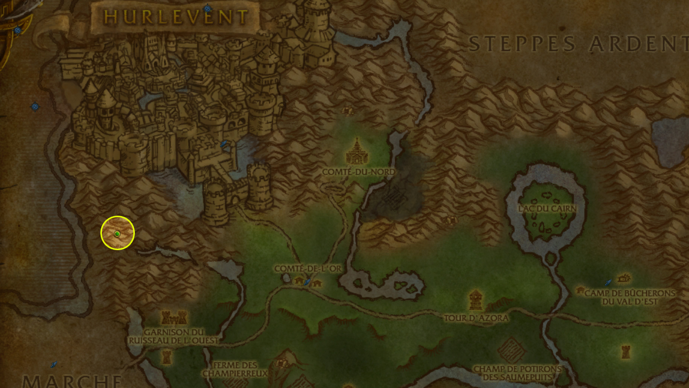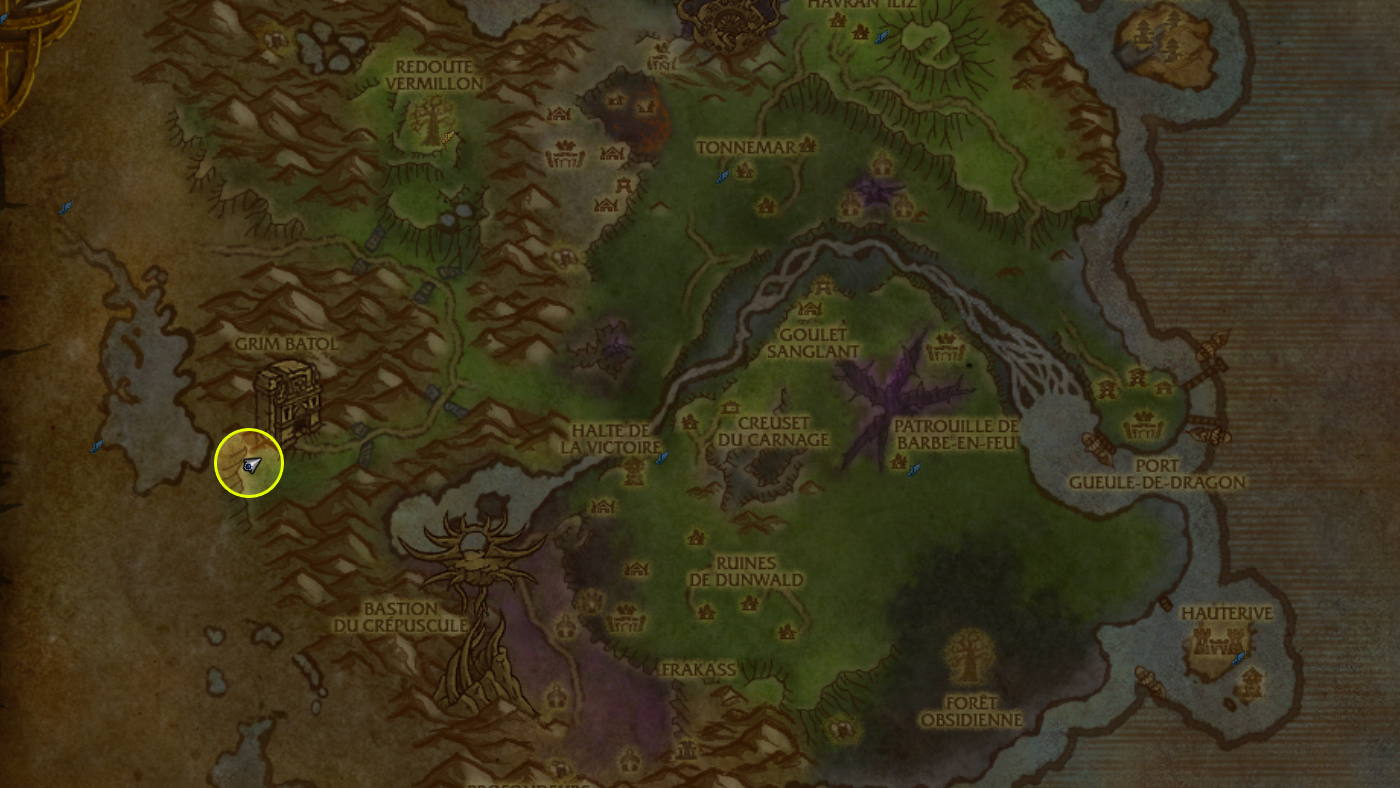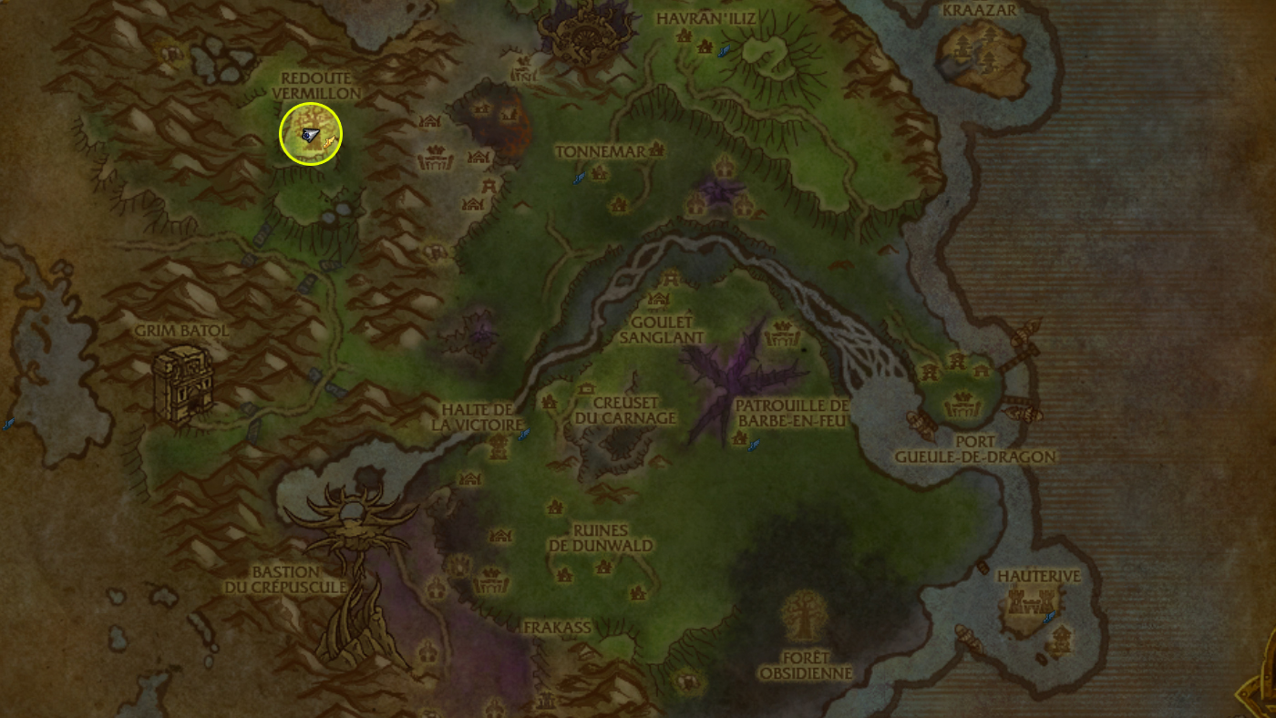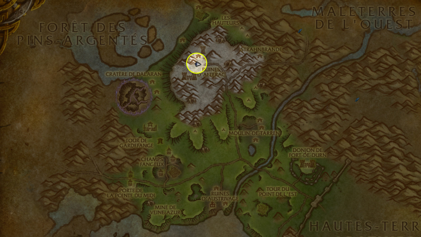 Une fois que les 20 étapes ci-dessus aux quatre coins d'Azeroth ont été validées, il suffit de se rendre dans la région des Hautes-terres Arathies (Royaumes de l'est) aux coordonnées