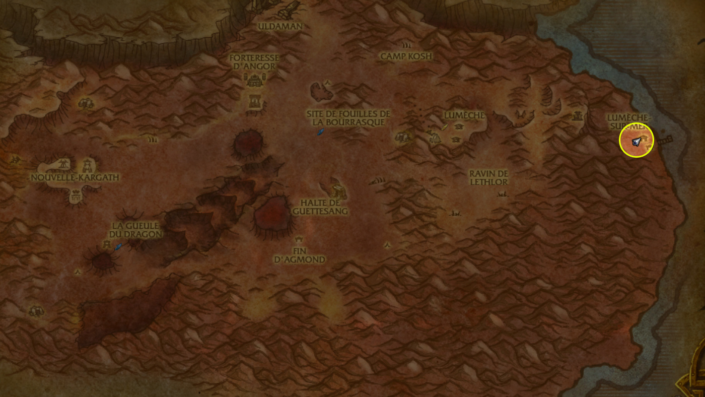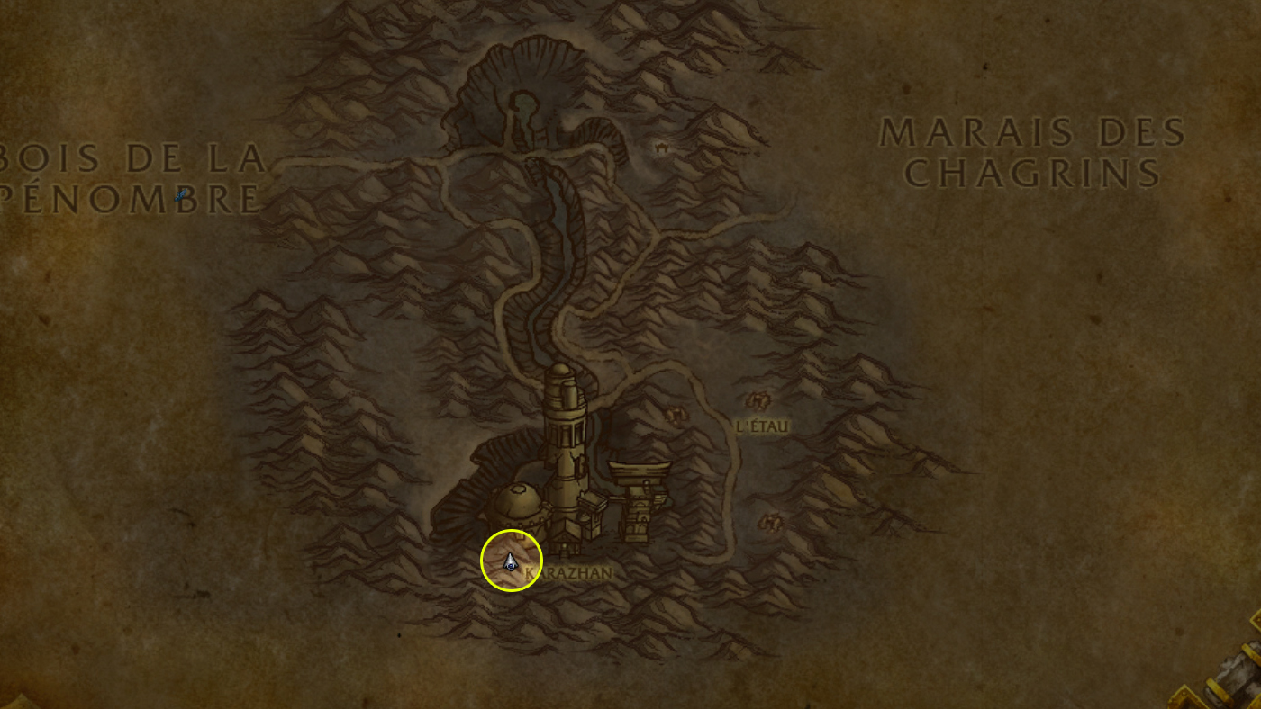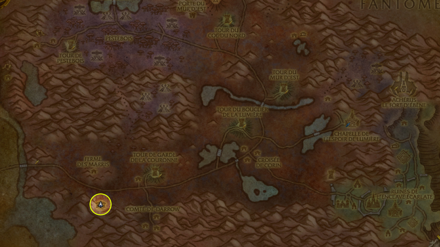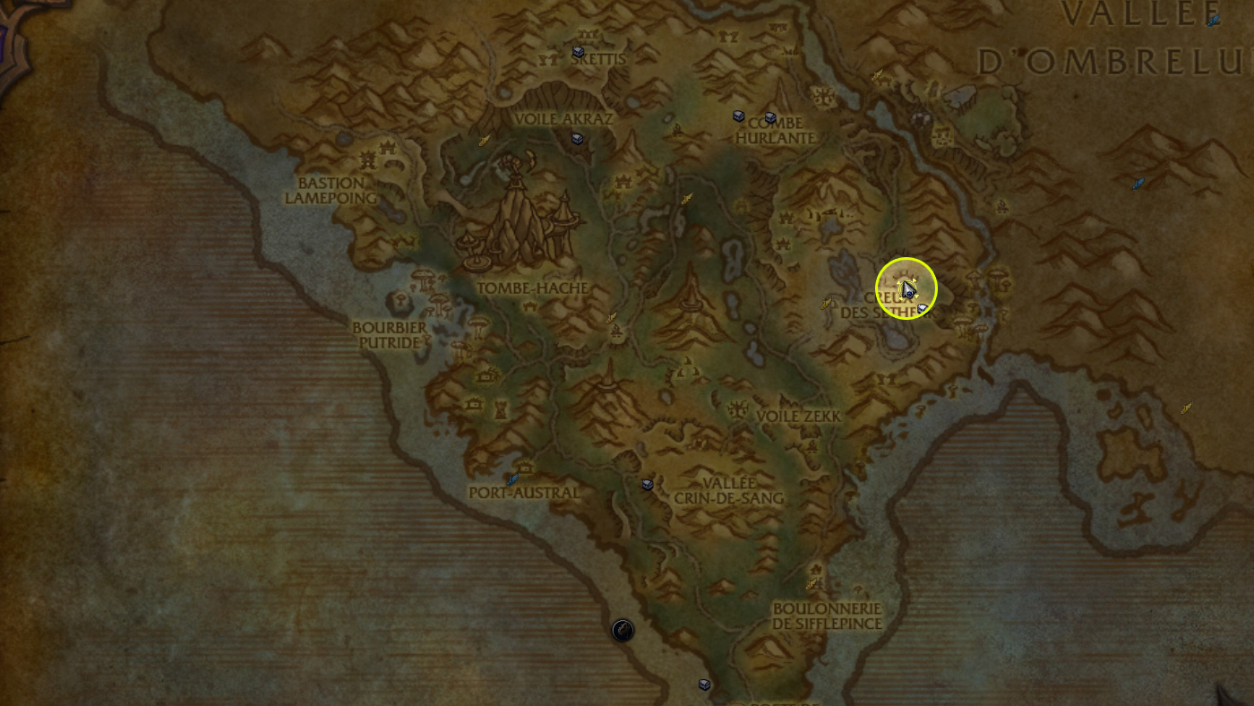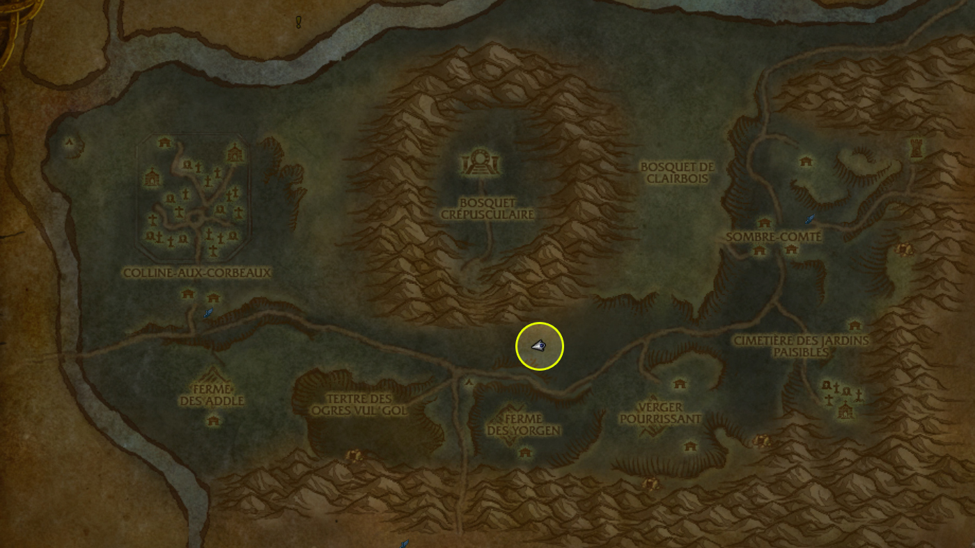 Une fois que les 20 étapes ci-dessus aux quatre coins d'Azeroth ont été validées, il suffit de se rendre dans la région des Hautes-terres Arathies (Royaumes de l'est) aux coordonnées