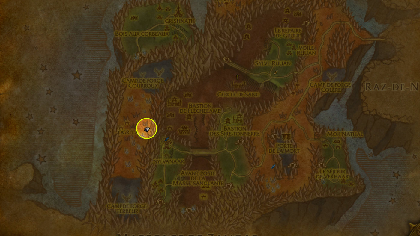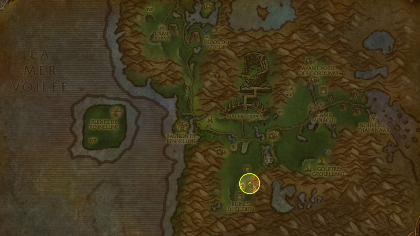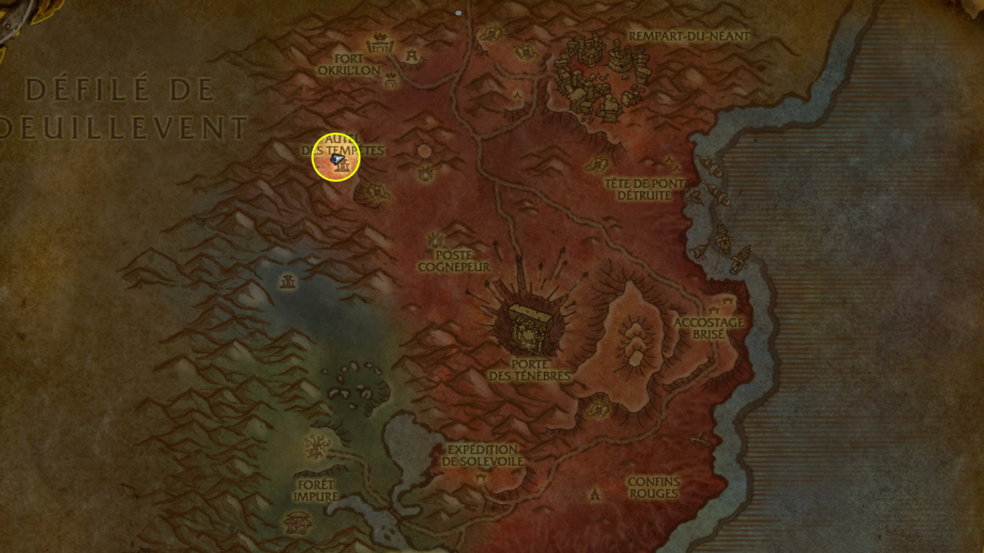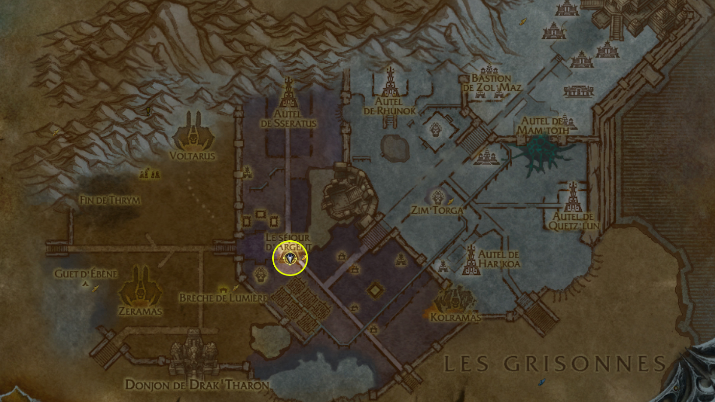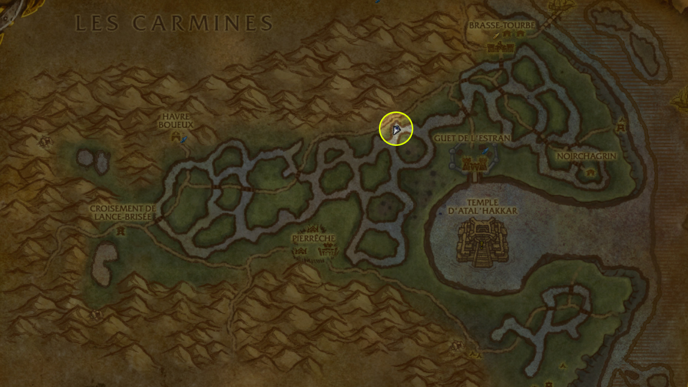 Une fois que les 20 étapes ci-dessus aux quatre coins d'Azeroth ont été validées, il suffit de se rendre dans la région des Hautes-terres Arathies (Royaumes de l'est) aux coordonnées
