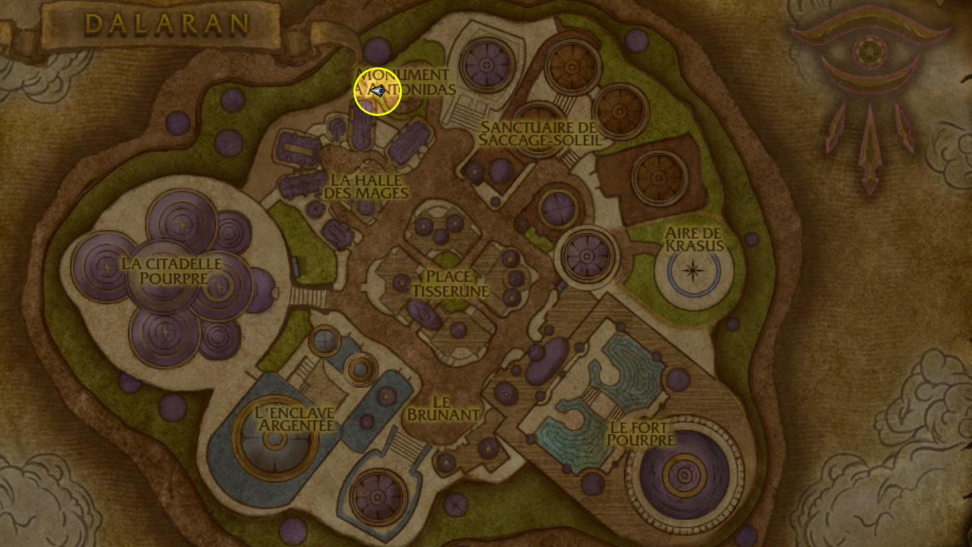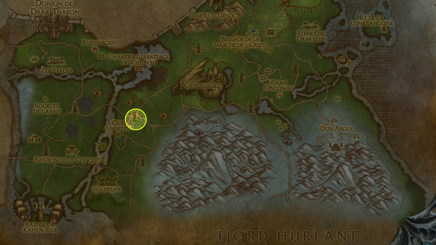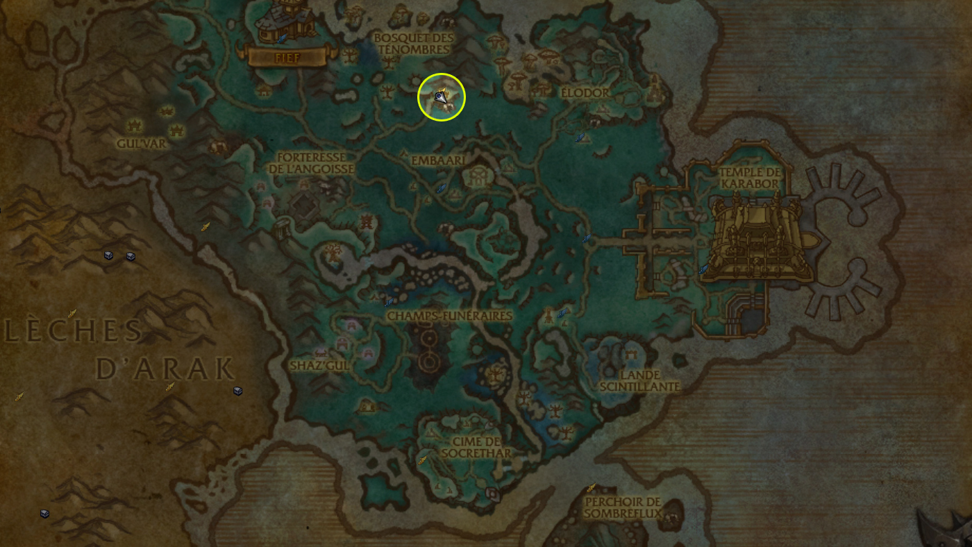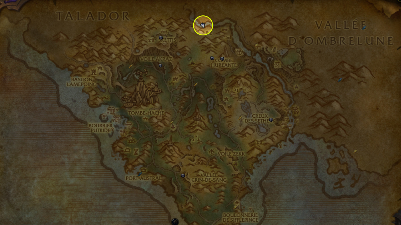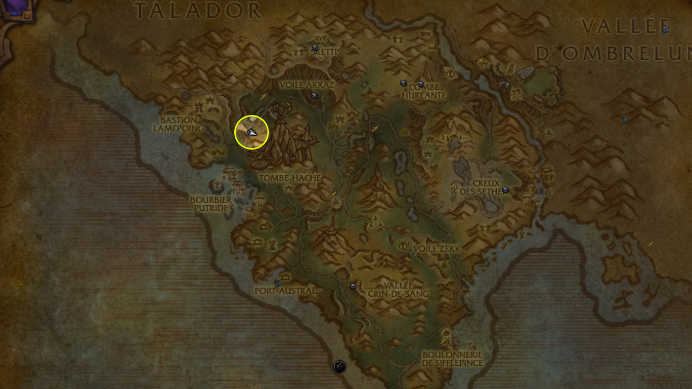 Une fois que les 20 étapes ci-dessus aux quatre coins d'Azeroth ont été validées, il suffit de se rendre dans la région des Hautes-terres Arathies (Royaumes de l'est) aux coordonnées