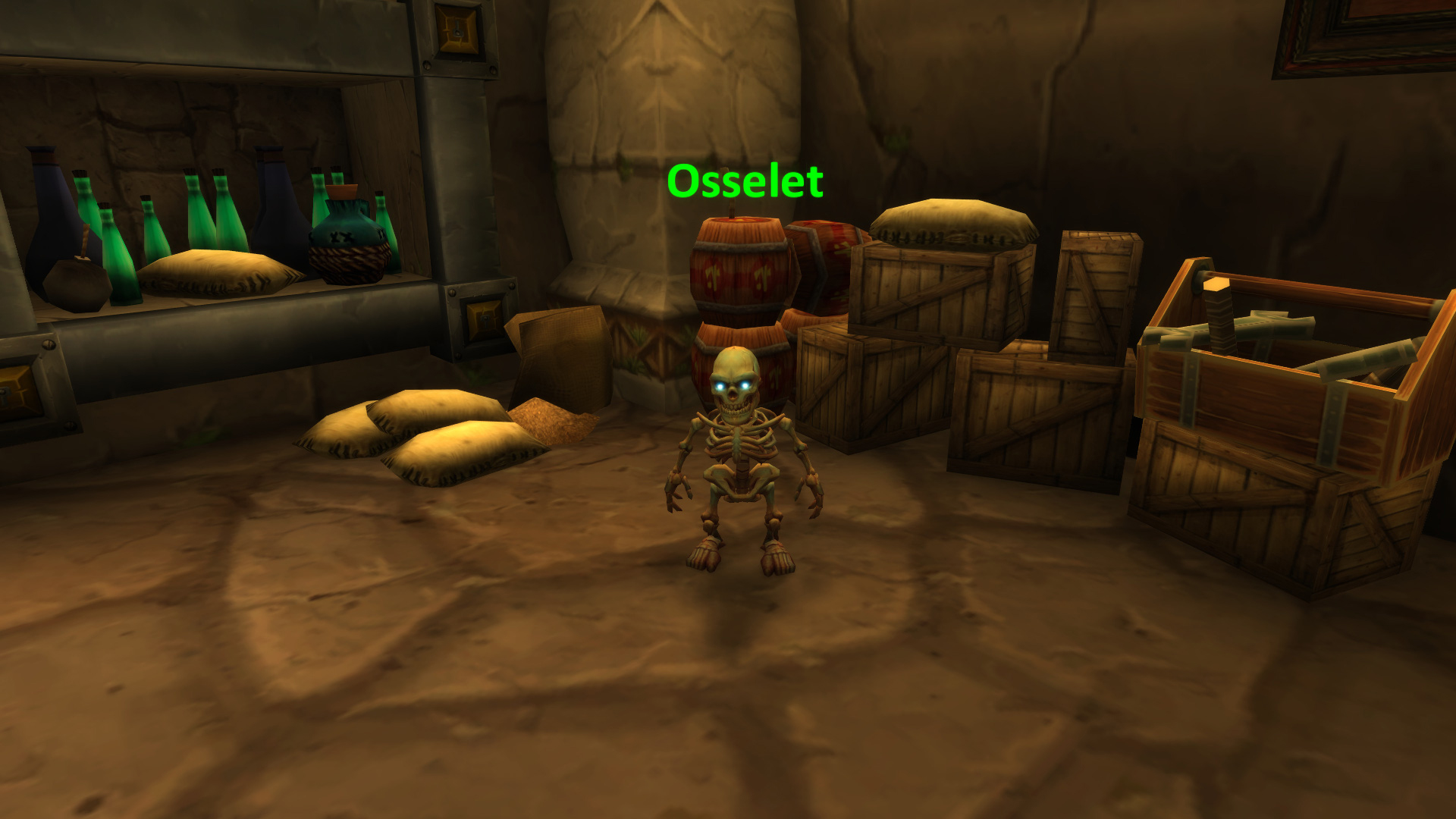 Une fois que je suis arrivée devant Osselet, il n’était pas là… j’ai cru avoir raté une des étapes et devoir tout refaire. Mais maintenant, avec Arathi de BFA… il faut penser à revenir à l’ancien Arathi pour le voir apparaître. Ca peut éviter quelques frayeurs, ou se retaper tout le trajet pour être sûr de n’avoir rien raté :D
