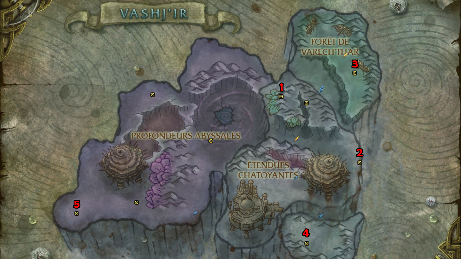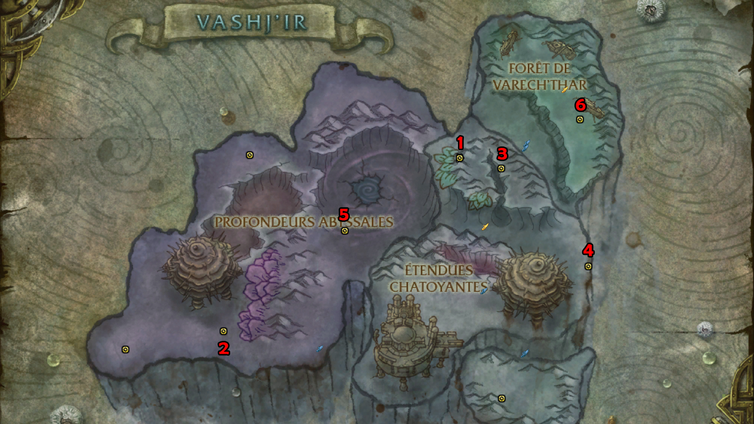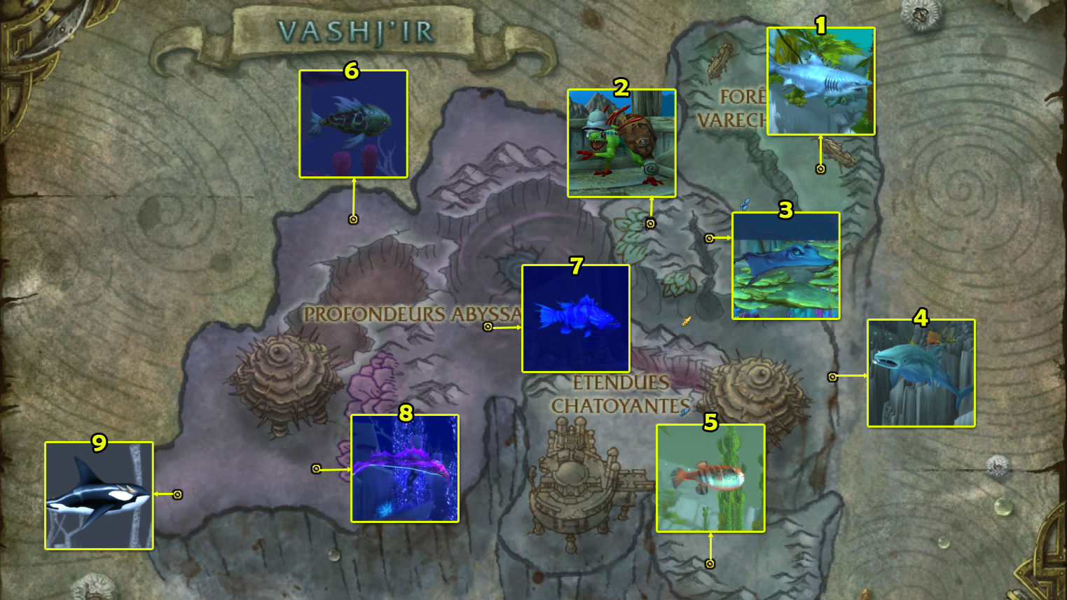 - Poisson rouge (obtenir le monocle) : débloque un puzzle à Vash'jir pour le