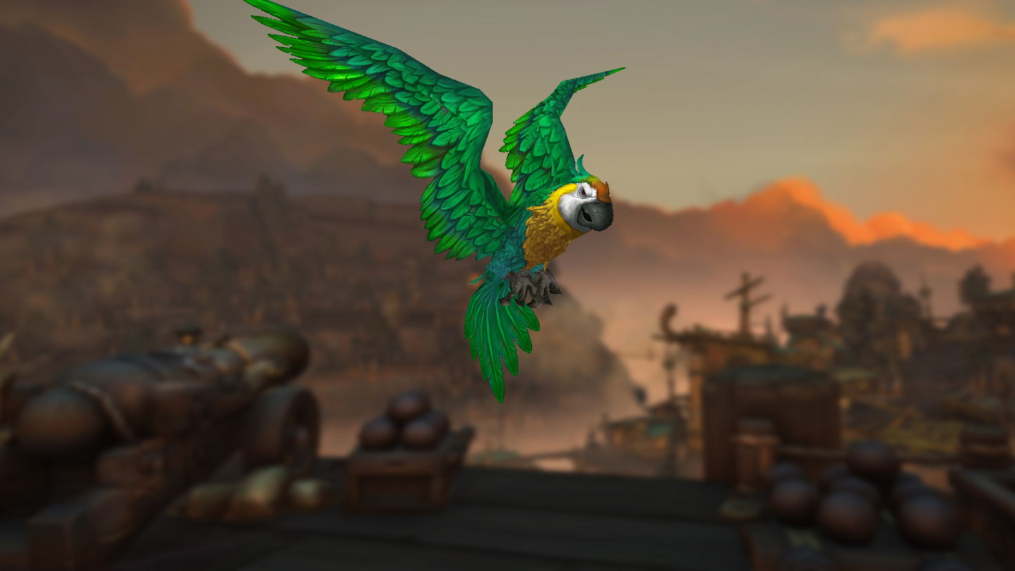 Obtention : Cette mascotte s'obtient lors de la deuxième partie de la campagne militaire de la Horde pendant le chapitre 3 afin de libérer dame Corsandre de Tol Dagor avec l'arcaniste Valtrois et Rexxar par une mission d'infiltration. Ce perroquet est une récompense de la quête