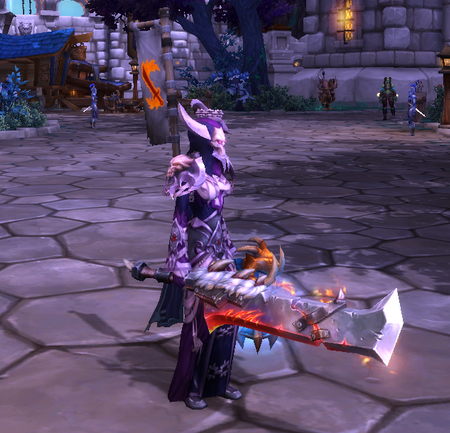 Ressources de fief ainsi que trois sujets requis avec un niveau d'objet 675. Celui-ci permet de s'équiper de la bannière et des armes du clan de la Lame-Ardente.