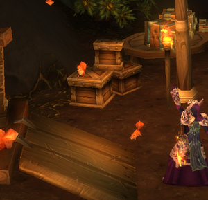 Le Feu de camp gangreflamme est un jouet des rares de la jungle de Tanaan. Ce jouet se récupère aux coordonnées 40.93, 68.43 sur le monstre rare Tomberonce qui patrouille au Marécage de Zoram. Celui-ci ne dispose pas d'un taux de butin de 100% et permet d'invoquer un feu de cuisine gangrenée qui réduit votre esprit de 4 points persistant pendant 5 minutes.