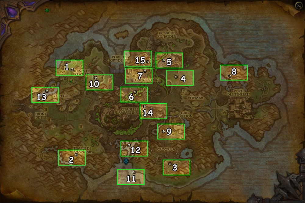 La mise à jour 6.2 dispose de quinze mascottes légendaires gangrenées à vaincre dispersés aux quatre coins de la jungle de Tanaan pour le nouveau haut-fait