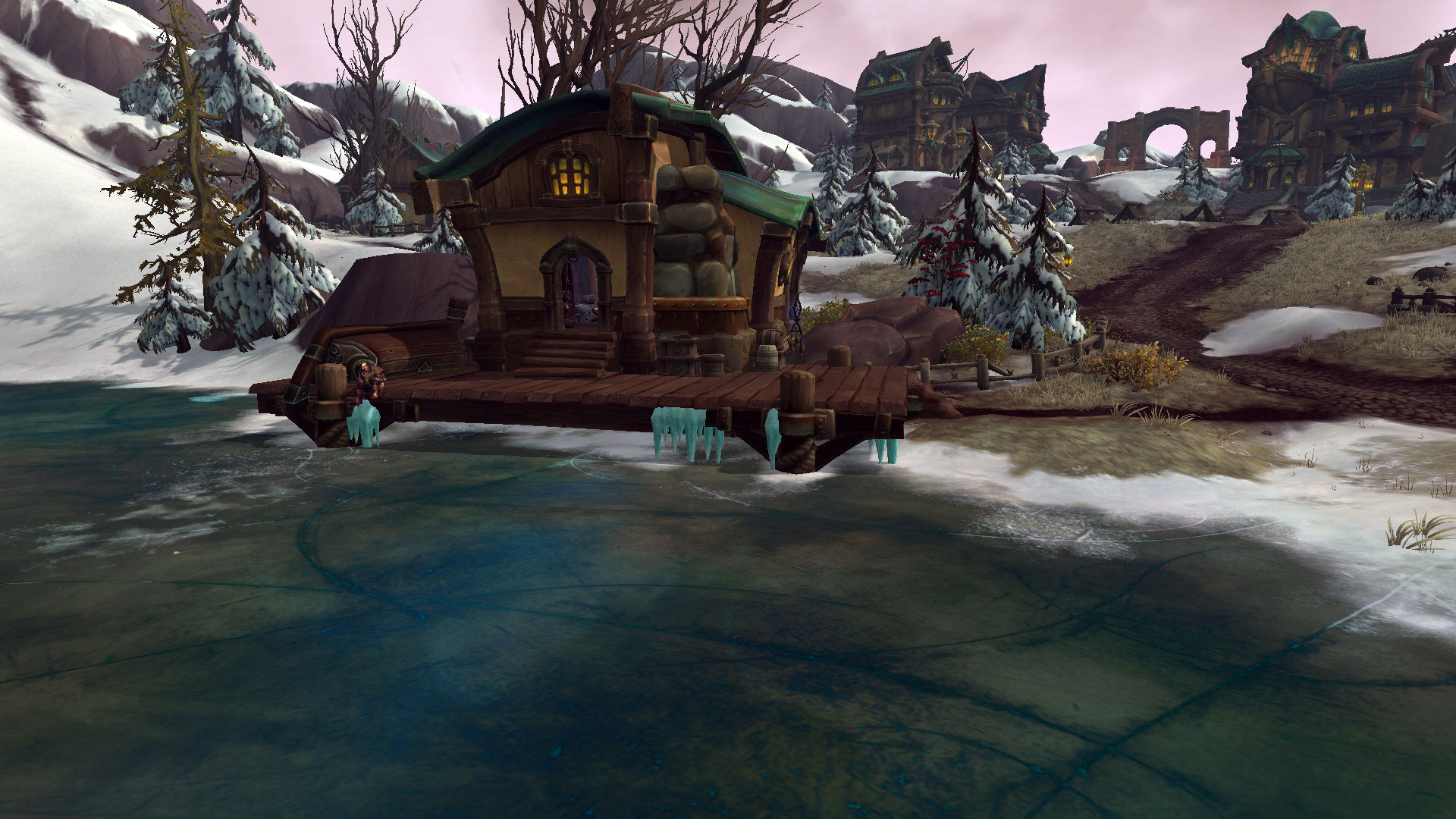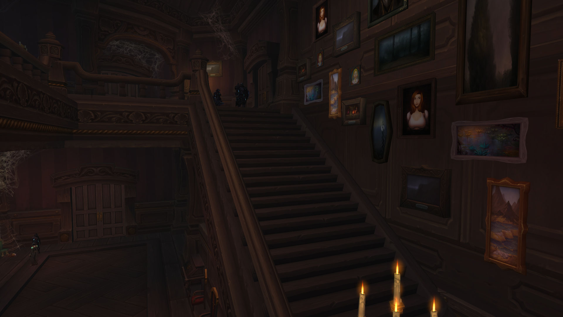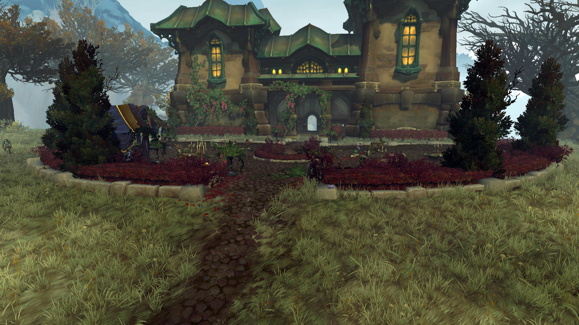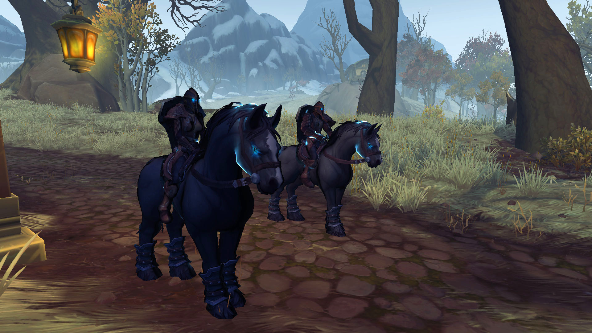 Commentaire de la rédaction : Cette région est sinistre avec ses forêts sombres et son ambiance lugubre. On est très rapidement pris dans l'ambiance qui vous plonge directement dans la malédiction par ses habitants figés. On y découvre également ses forêts abandonnées à perte de vue et ses montagnes enneigées gigantesques qui arbore la région. Au fur et à mesure de la progression dans les quêtes narratives, les joueurs doivent mener l'enquête pour découvrir les origines de cette malédiction lancée par des sorcières. En terme d'environnement, cette région est plutôt unique ! Même si cette zone partage des similitudes avec le bois de la pénombre, Drustvar quant-à elle se démarque par son climat terrifiant et ses créatures cauchemardesques comme les maccarbres ou les hommes ours-porc. L'histoire de la région est basé sur les contes de sorcières, dont certains comme la fille Lucille Malvoie sont accusés de sorcellerie ayant provoqué le chaos et la destruction de leurs terres. Malgré les grandes montagnes enneigées apportant de la clarté au décor, l'environnement global de Drustvar est plongée dans la noirceur.