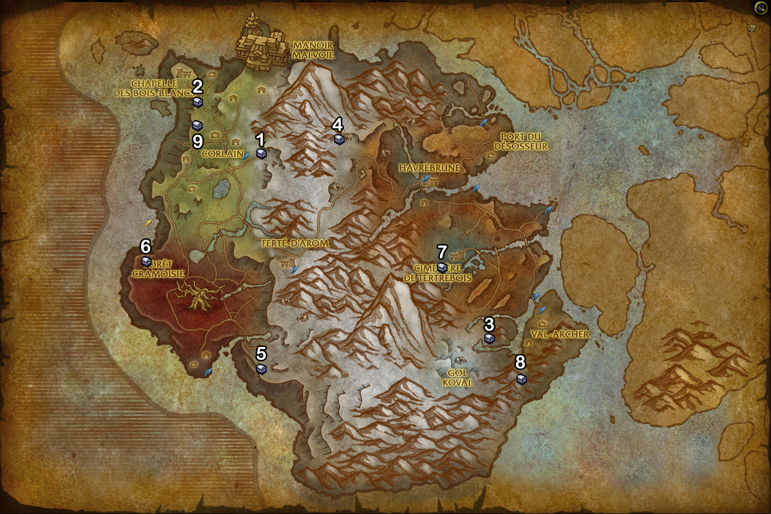 Exploration de Drustvar : Explorer Drustvar et révéler les zones voilées de la carte du monde.