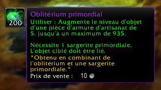 Oblitérium primordial permet d'augmenter les nouvelles pièces d'armure jusqu'à 935 de niveau d'objet