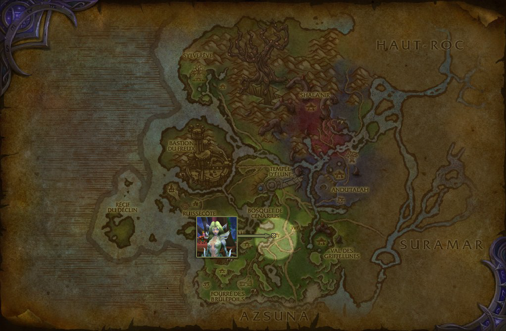 Cette recette requiert le métier de pêche puisqu'elle peut être achetée à l'intendant de Val'sharah : Gardienne Raynae aux coordonnées