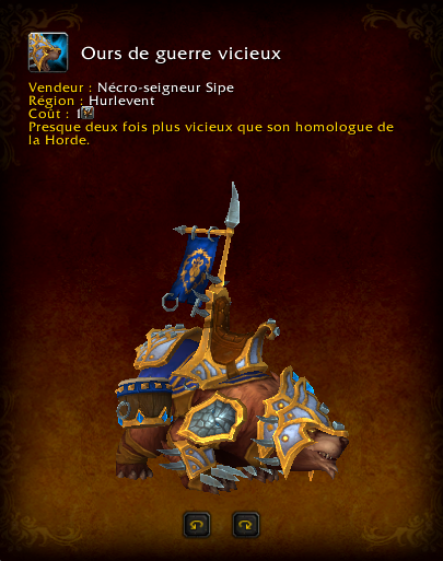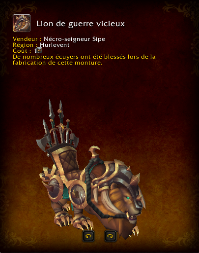 Selle viscieuse dès l'accomplissement du haut-fait pour choisir d'acheter l'une des trois nouvelles montures qui varie en fonction de votre faction.