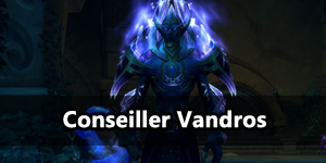 La stratégie contre le conseiller Vandros se déroule en deux phases succinctes puisque la phase principale contre le boss, vous aurez besoin de toute l'arche de combat à cause de ses capacités arcaniques tandis que la seconde phase démarre à 50% de ses points de vie : vous téléporte dans un monde parallèle dont le but sera de rejoindre Vandros avant les deux minutes par un défi de groupe.