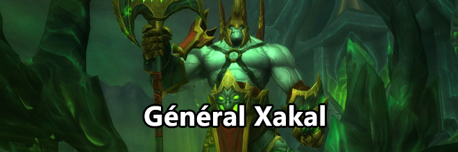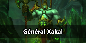 La stratégie contre le général Xakal est globalement une version améliorée de Zakuun de la Citadelle des flammes infernales par ses mécanismes qui disposent de la base de ce boss de raid. Pour revenir à Xakal, il va se tourner en direction d'un personnage-joueur aléatoire et génère une vague d'énergie de l'ombre avec sa hache d'