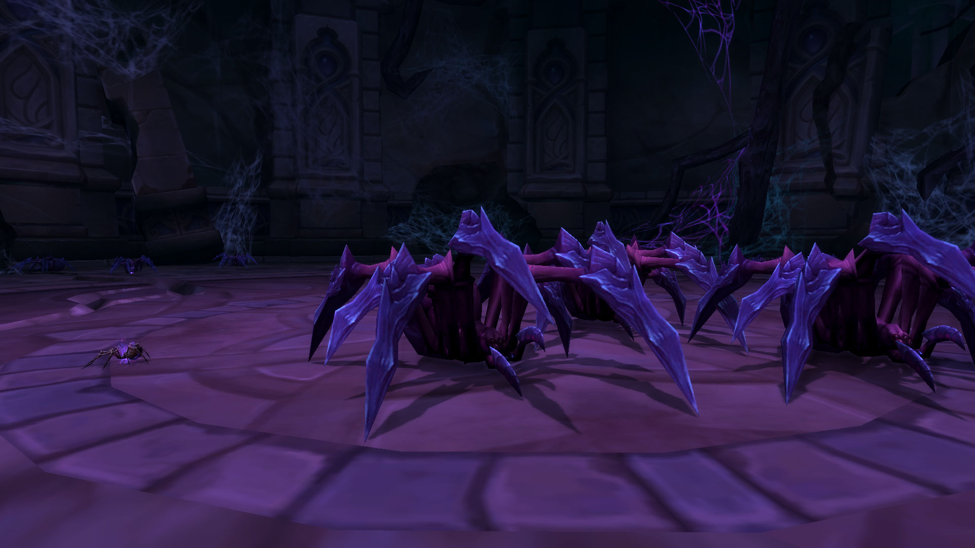 Cette énorme araignée a fait son nid dans le creux sous un grand arbre de mana. Au fil des ans, énergies magiques éparses et différents écoulements l'ont transformée, l'imprégnant d'énergie arcanique et faisant d'elle l'un des prédateurs les plus redoutables de l'Arcavia.