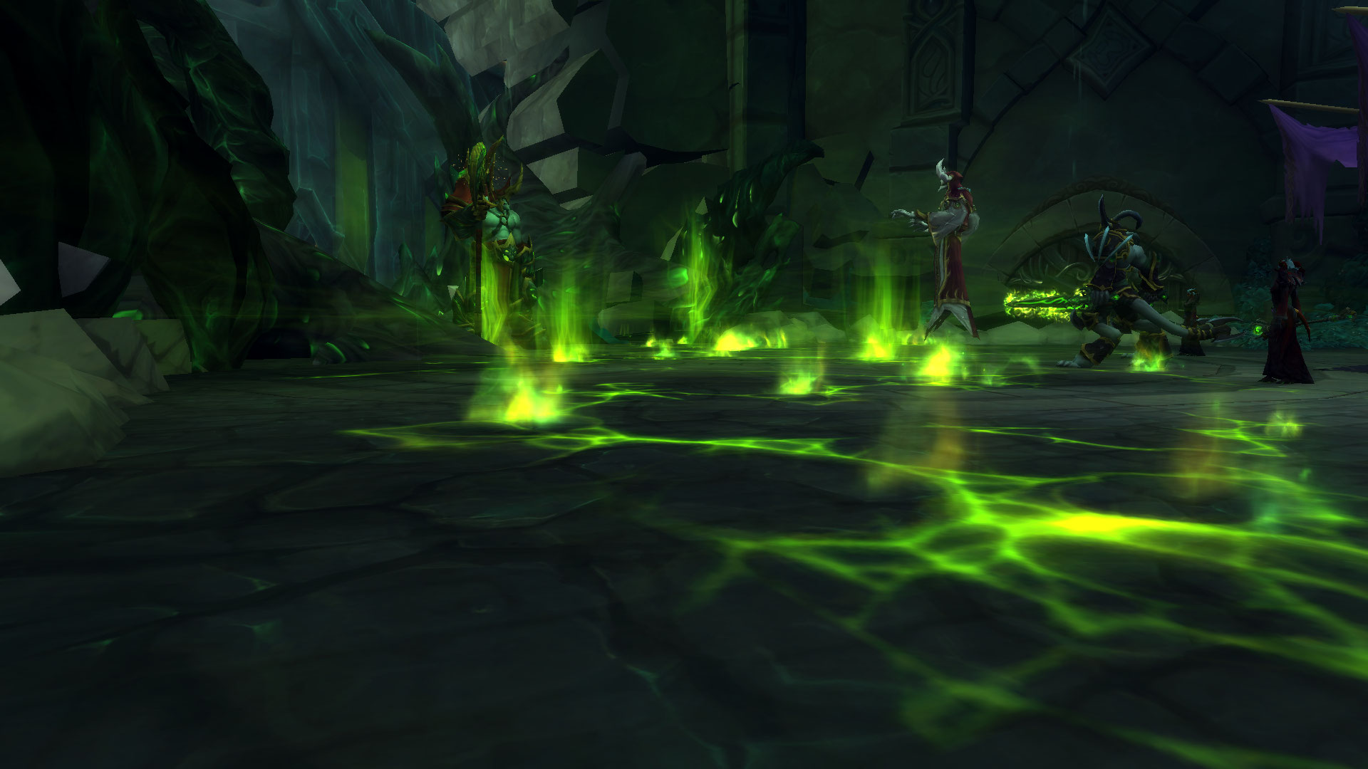 Fissure gangrenée s'ouvre sous les pieds d'un personnage-joueur aléatoire : cette fissure dispose du même visuel que la prison gangrenée de Socrethar et vous indique de ne pas vous y rendre dedans car, entrer en contact de la fissure forme une gangreflèche avec