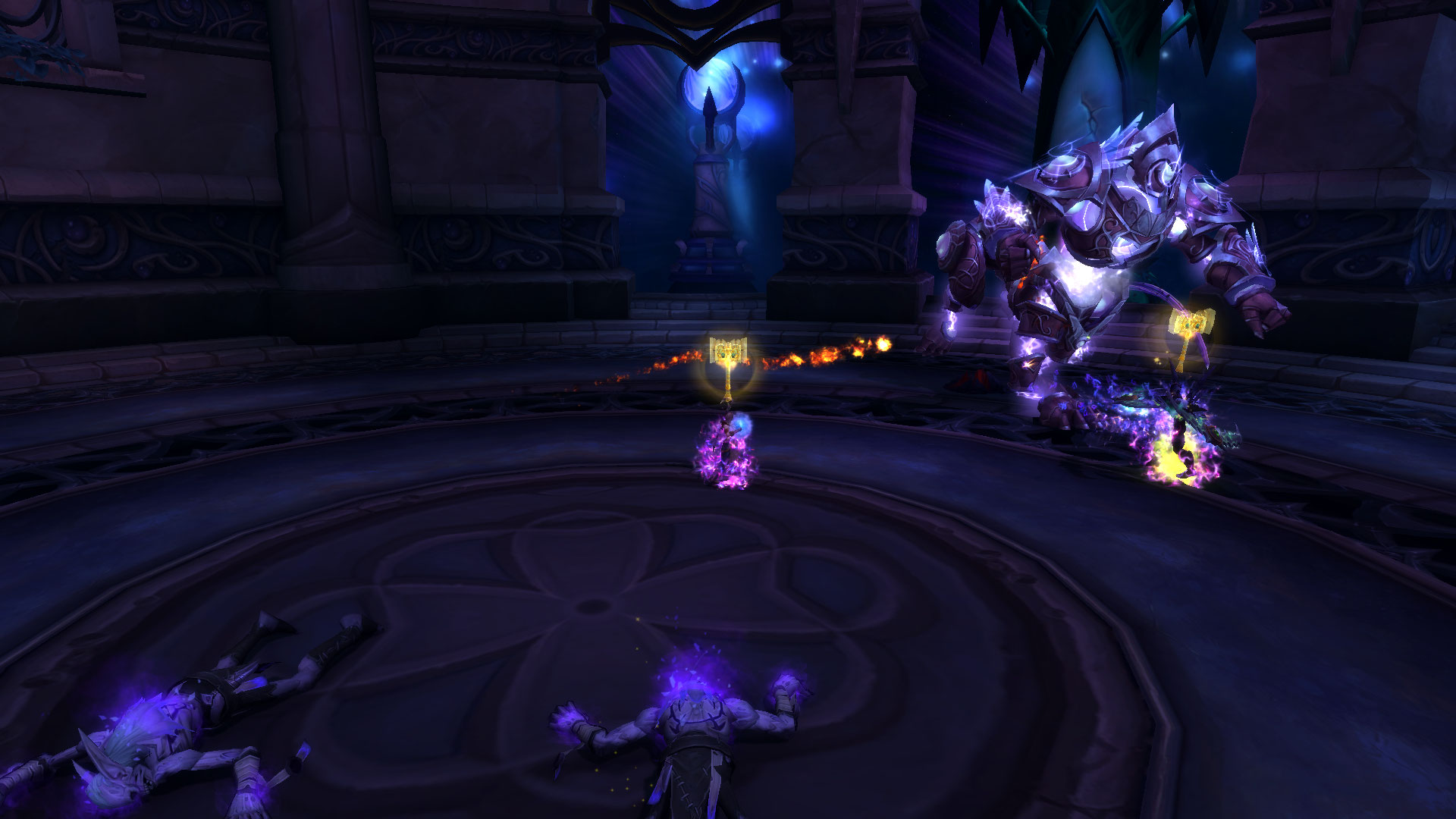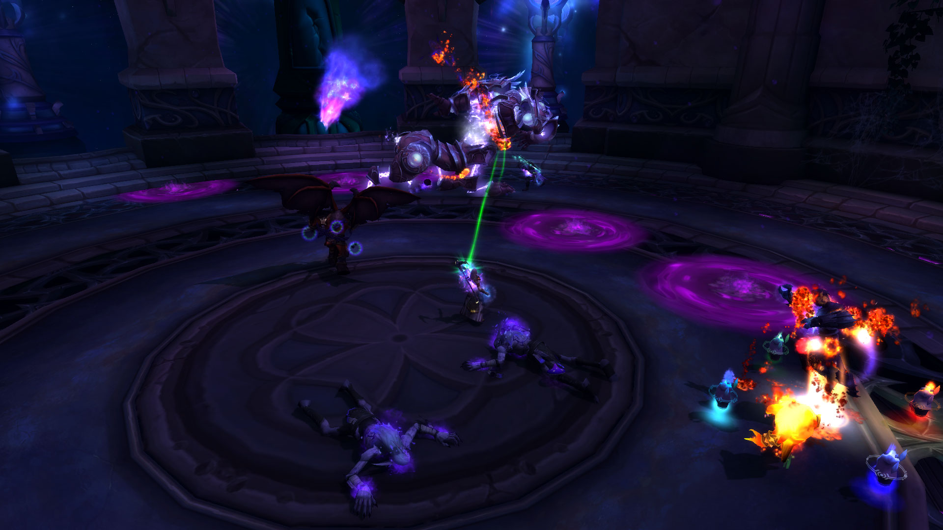 Bombardement qu'il faut éviter d'être regroupé dans les 5 mètres de l'emplacement ciblé : les DPS à distance devront s'occuper de switch sur ces cibles pour les affaiblir et qu'elles atterrissent ensuite au corps à corps pour votre tank qui seront de plus en plus dangereuses avec