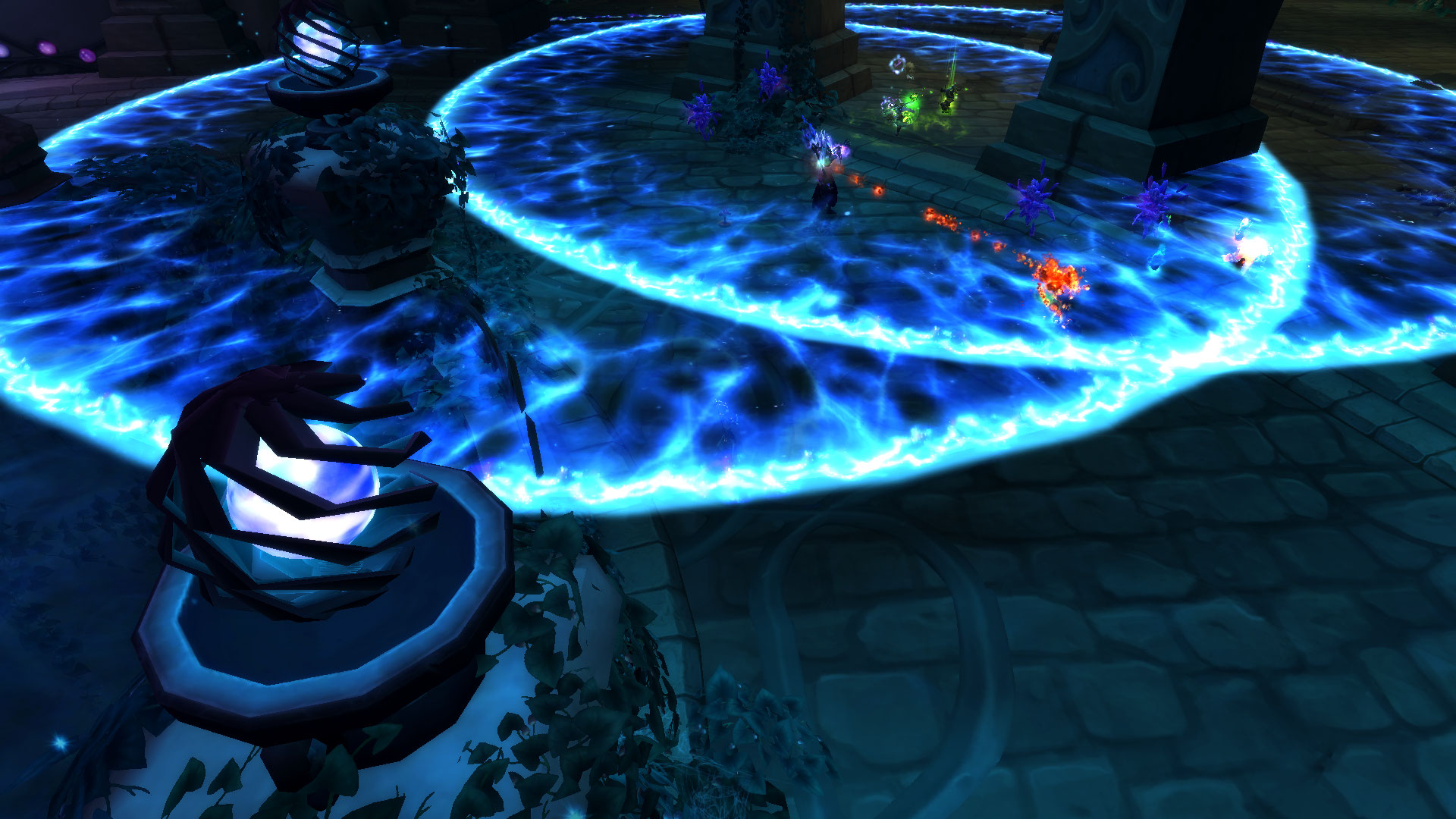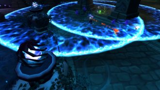 Éclats de temps. Cette technique invoque 3 éclats du temps qui infligent des dégâts autour d'eux régulièrement à moins de 10 mètres qu'il faut éviter : (d'où la solution de tourner dans le cercle à chaque utilisation) puisque ces éclats explosent au bout de 8 secondes avec la