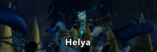 Reine déchue des val'kyrs, Helya était autrefois le bras droit d'Odyn. Elle menait les esprits des champions vrykuls jusqu'aux salles des Valeureux afin de les préparer au combat qui déciderait l'avenir d'Azeroth. Cependant, après la trahison de Loken, elle se laissa convaincre de rejoindre ce dernier et de se retourner contre son maître. Elle rôde désormais dans le royaume ténébreux sous le monde, où elle ourdit sa vengeance.