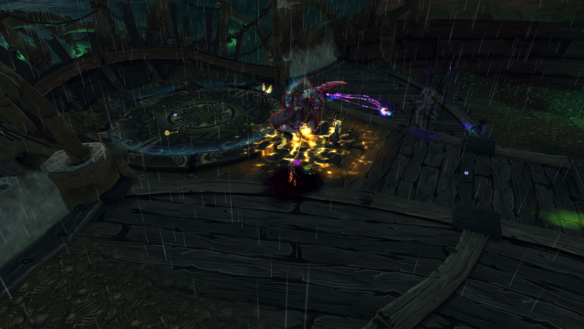 : Convertit les essences de Plaie restantes en guerriers ressuscités et inflige 104 000 points de dégâts d'Ombre aux cibles se trouvant à moins de 3 mètres lors de l'invocation.