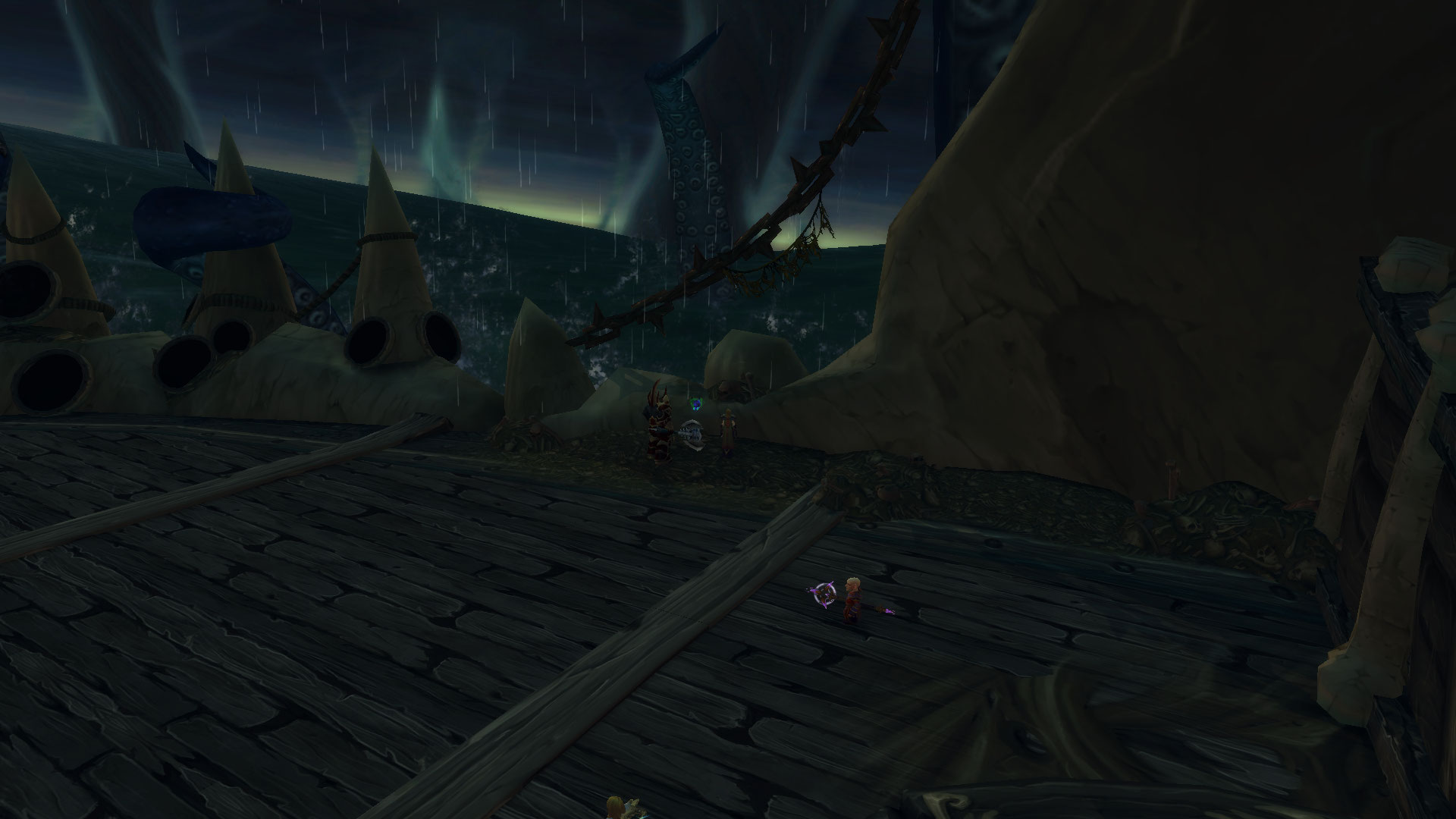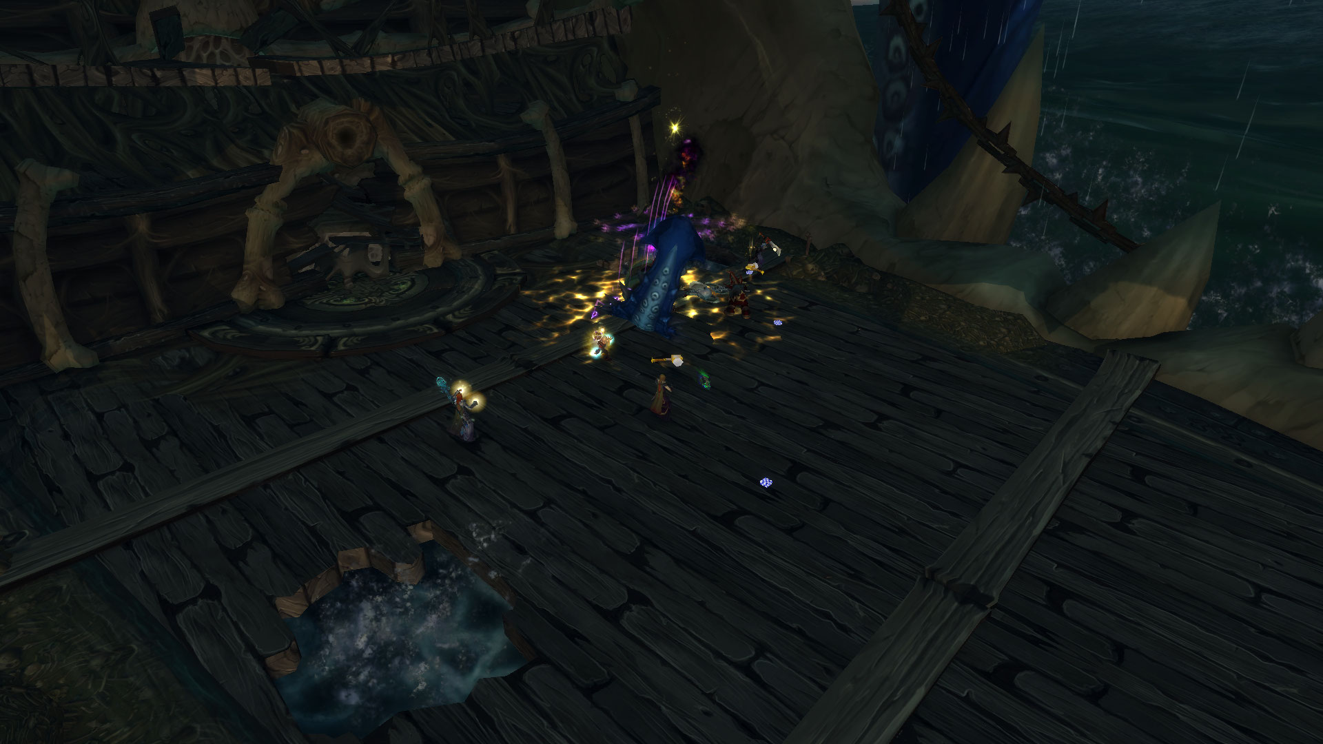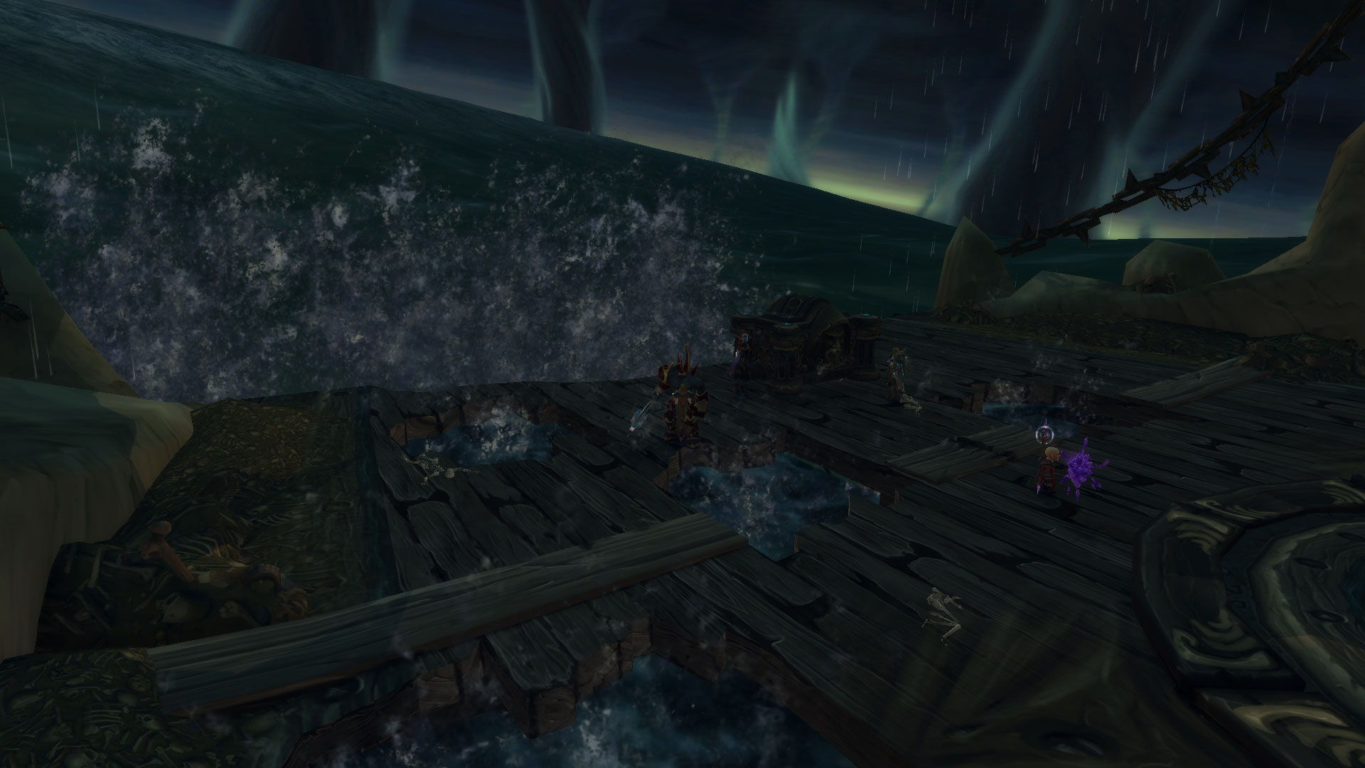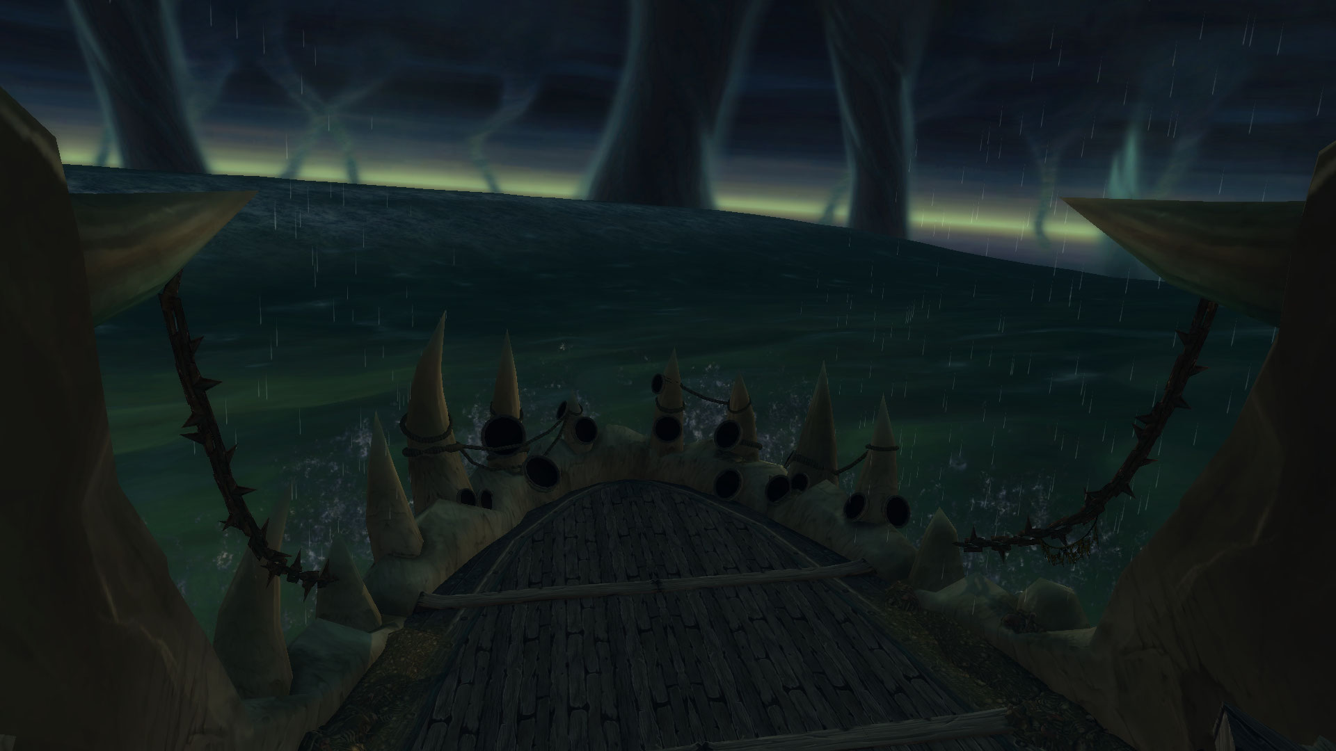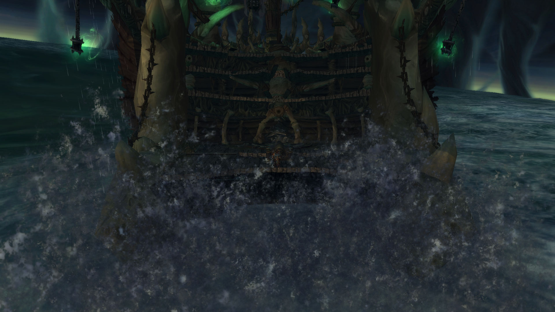 Tentacule perforant perce la coque du Naglfar et apparaissent brièvement pour infliger des dégâts de Nature importants au bout de 3 s : la coque brisée du Naglfar est permanente et vous repousse si vous tentez de plonger dans les eaux (au lieu de vous tuer, ce qui semble être plus raisonnable).