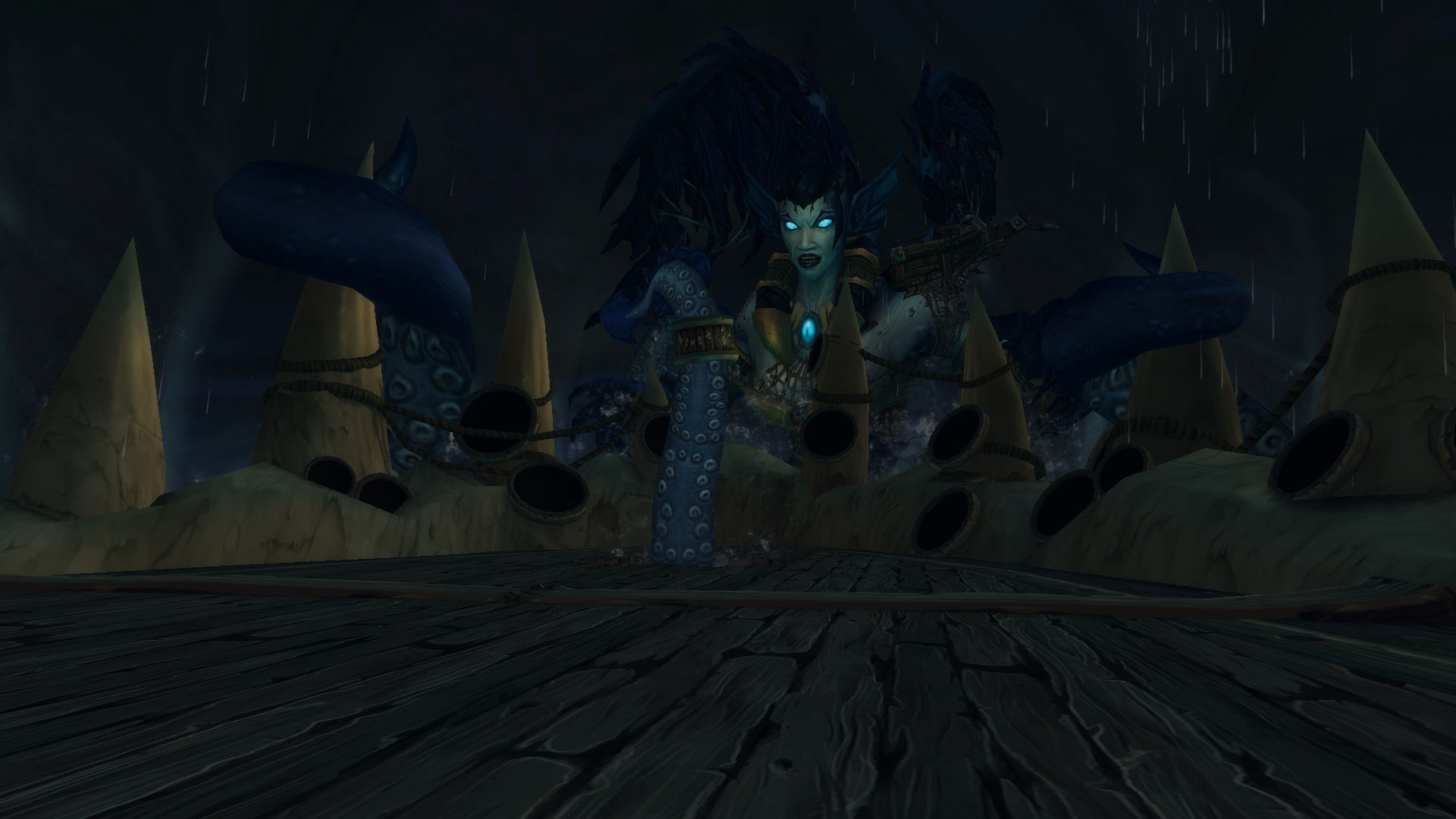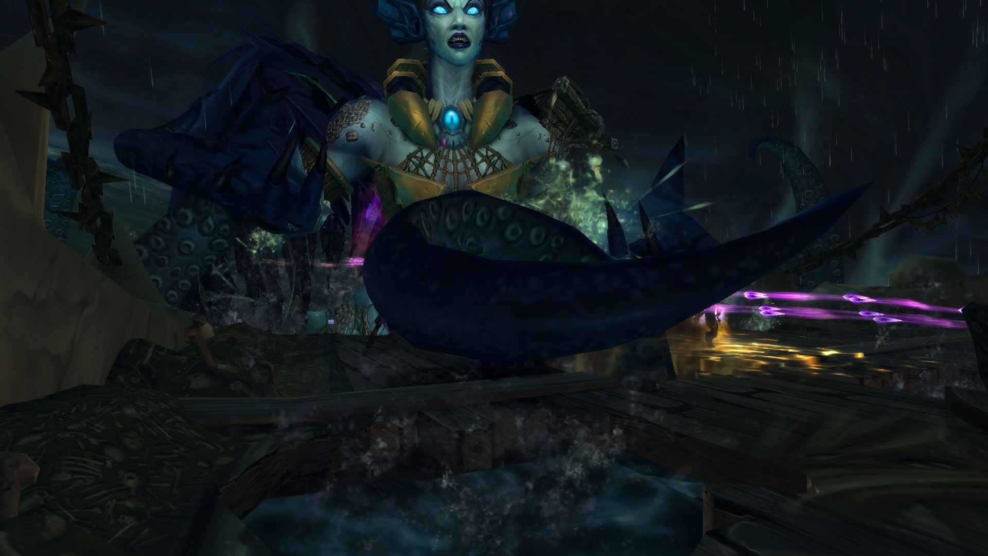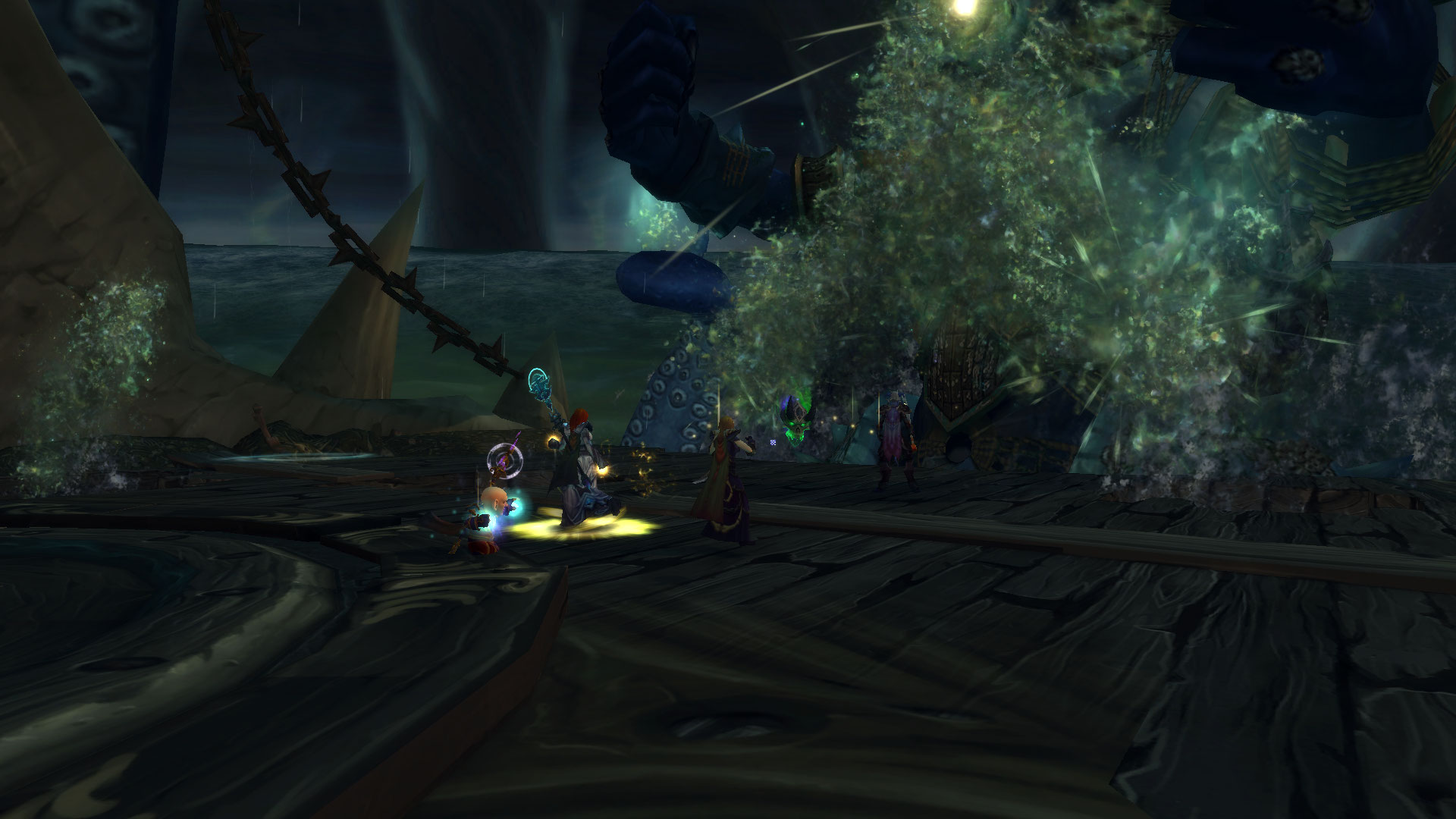 En mode héroïque et plus, Helya utilise également Barrage d'eaux stagnantes pour attaquer le navire par bâbord ou tribord.