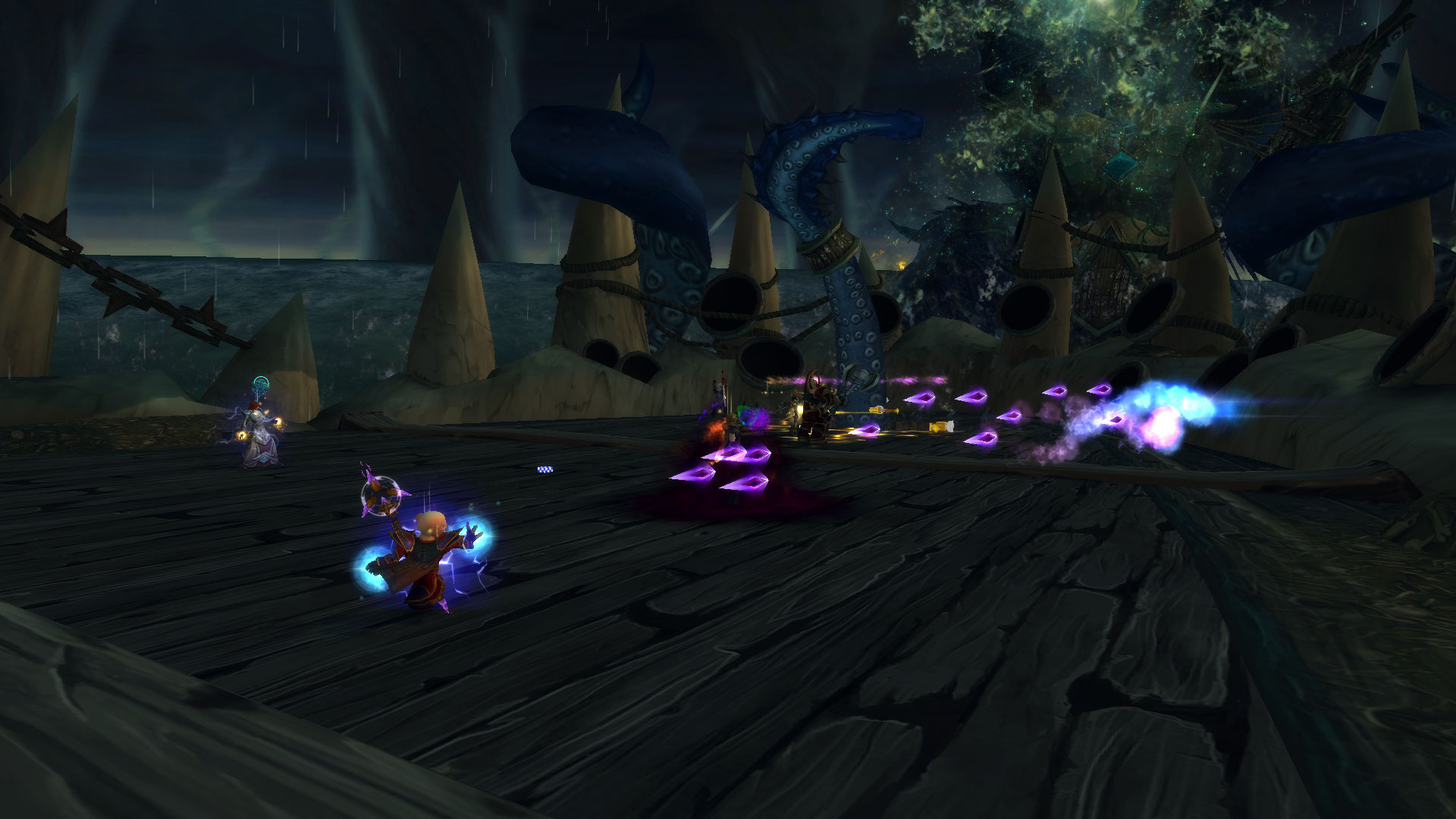 Tentacule perforant : Le tentacule de Helya perce la coque du Naglfar, repoussant les cibles proches. Au bout de 3 secondes, il inflige 468 000 | 676 000 | 946 500 points de dégâts de Nature aux personnages-joueurs se trouvant à moins de 6 mètres et les repousse.- Tentacule destructeur : Venir à bout des tentacules destructeurs blesse Helya.