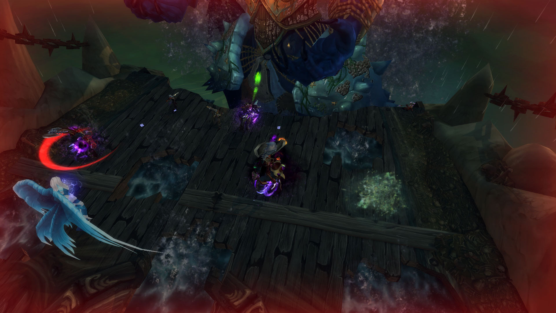 : Fait apparaître une déchirure dans le Néant distordu à l'emplacement de la cible pendant 30 s, ce qui inflige immédiatement 260 000 | 473 000 points de dégâts d'Ombre aux ennemis situés à moins de 4 mètres du point d'impact. De plus, le sol est profané à cet endroit, ce qui inflige 78 000 | 142 500 points de dégâts d'Ombre toutes les secondes.