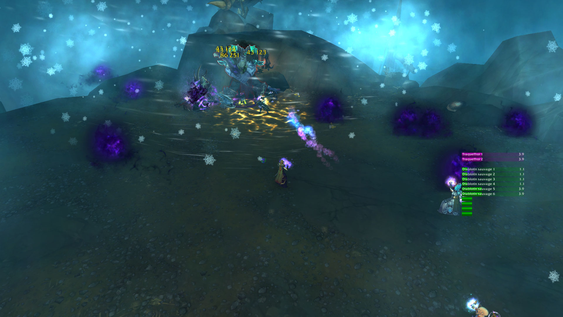 Torrent : Fait apparaître un torrent de globules d'eau gelée qui percutent le Naglfar, infligeant 41 500 points de dégâts de Givre à plusieurs cibles.