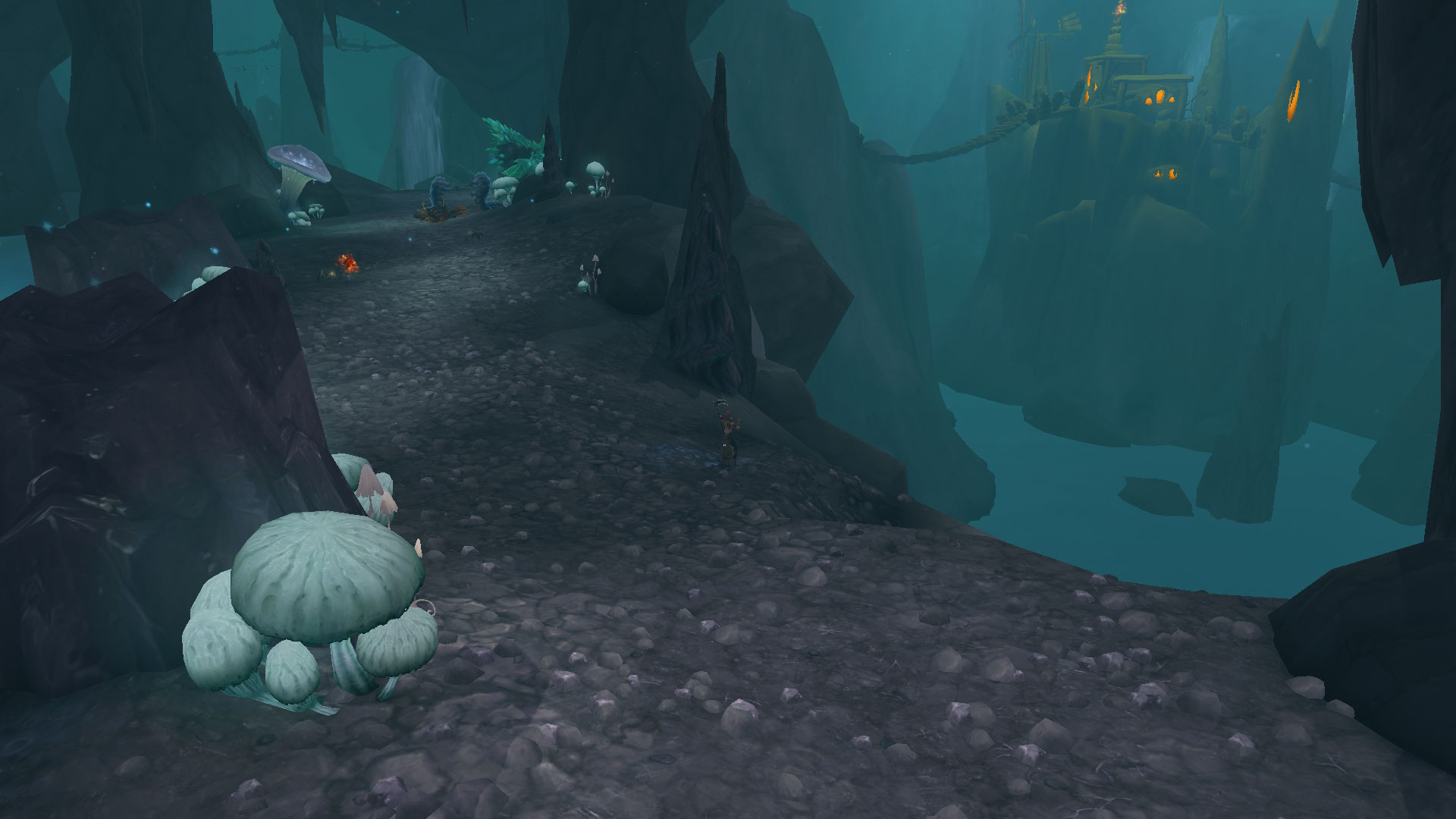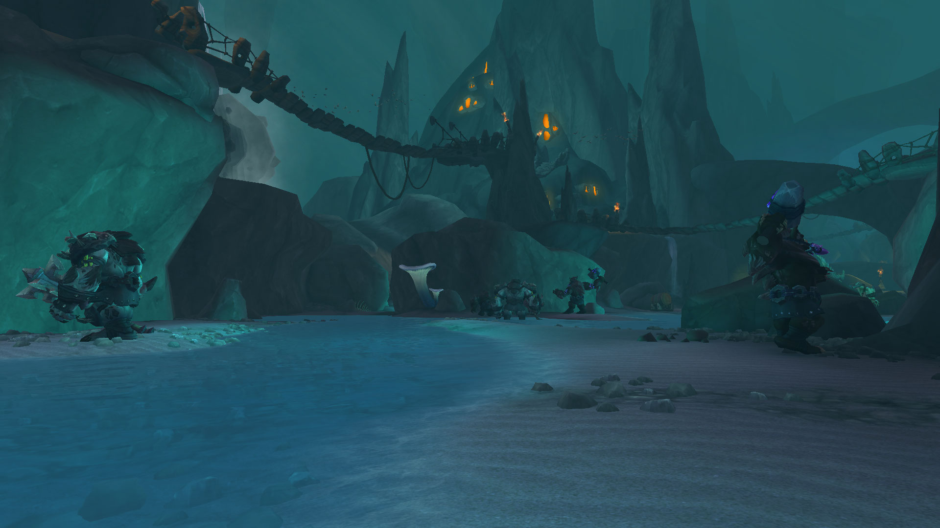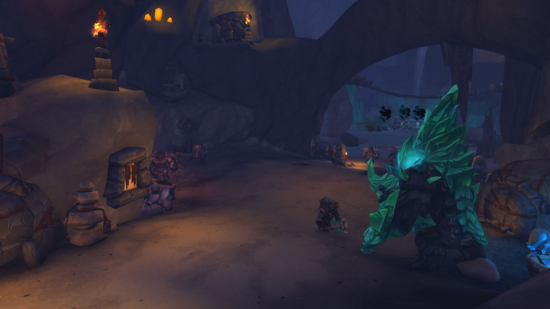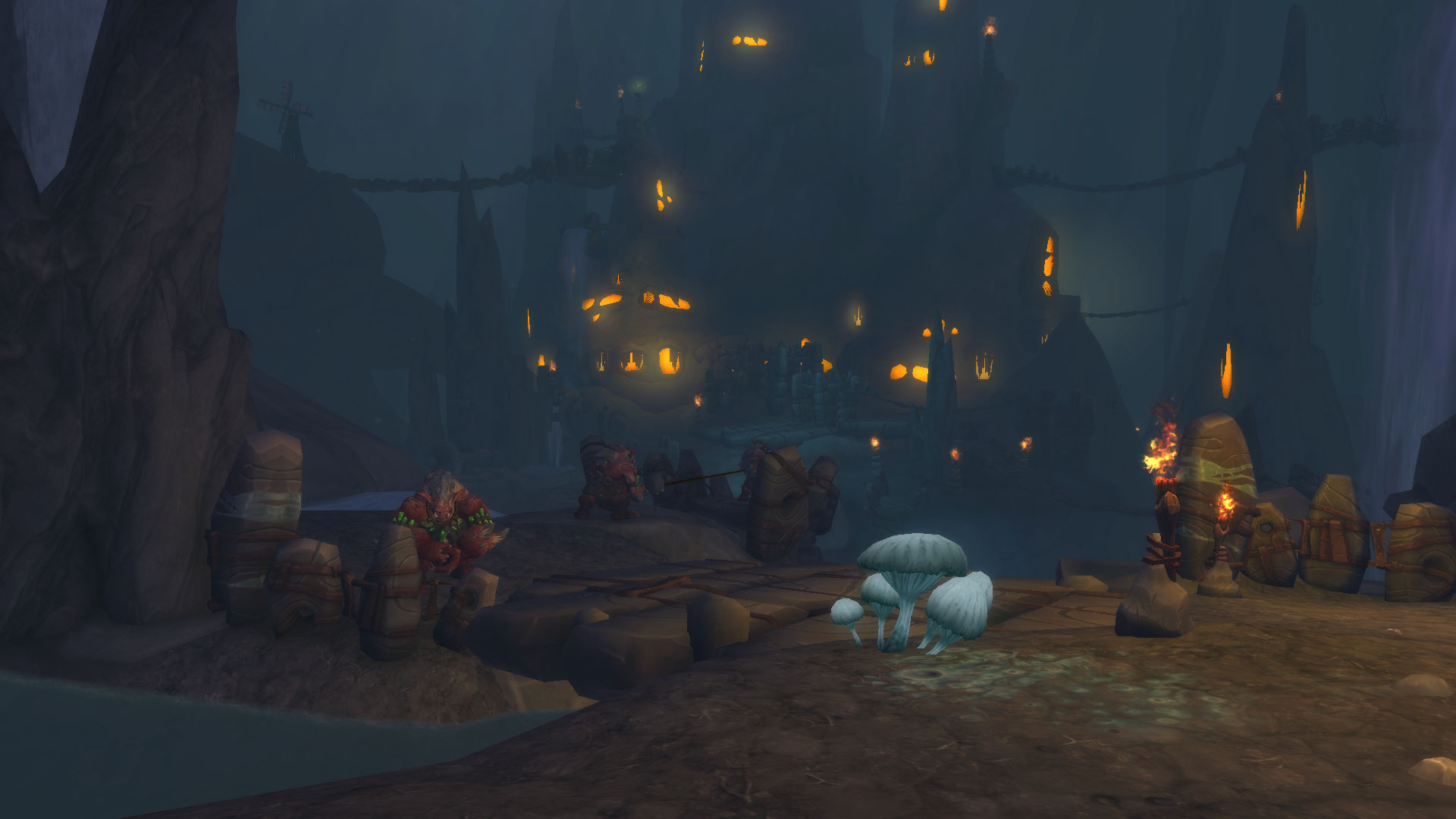 "Le Gardeterre Neltharion, plus tard connu sous le nom d'Aile de mort, fit jadis de cette grotte son antre. Après sa chute, les drogbars qui idolâtraient le grand dragon choisirent d'y ériger leur capitale. Aujourd'hui, Dargrul, leur <roi d'en bas>, rassemble une vaste armée dans ces profondeurs. Galvanisé par le marteau de Khaz'goroth, l'ost jaillira bientôt à flanc de montagne si personne n'intervient. Et ce jour-là, la tragédie frappera d'abord Haut-Roc, avant de menacer la sécurité de tout Azeroth."