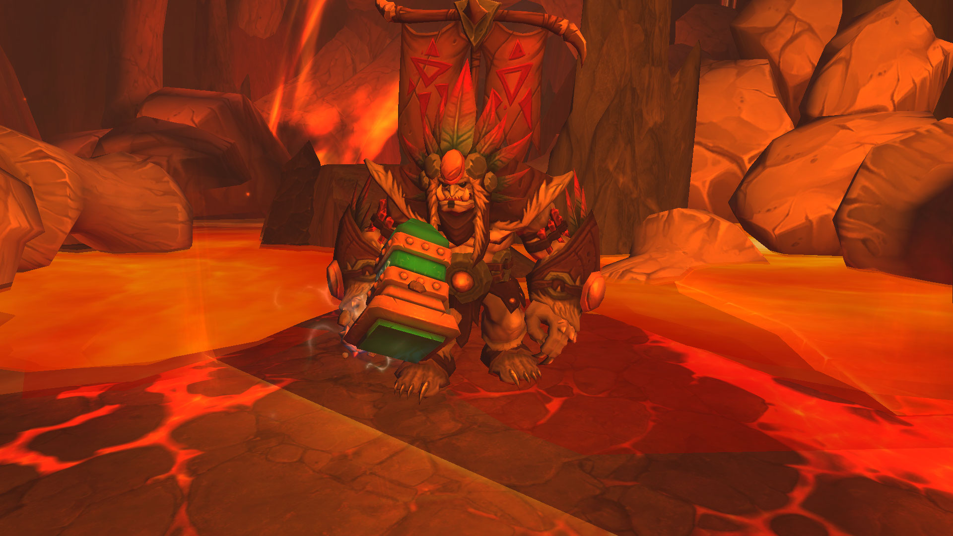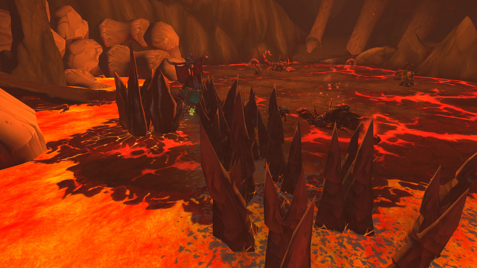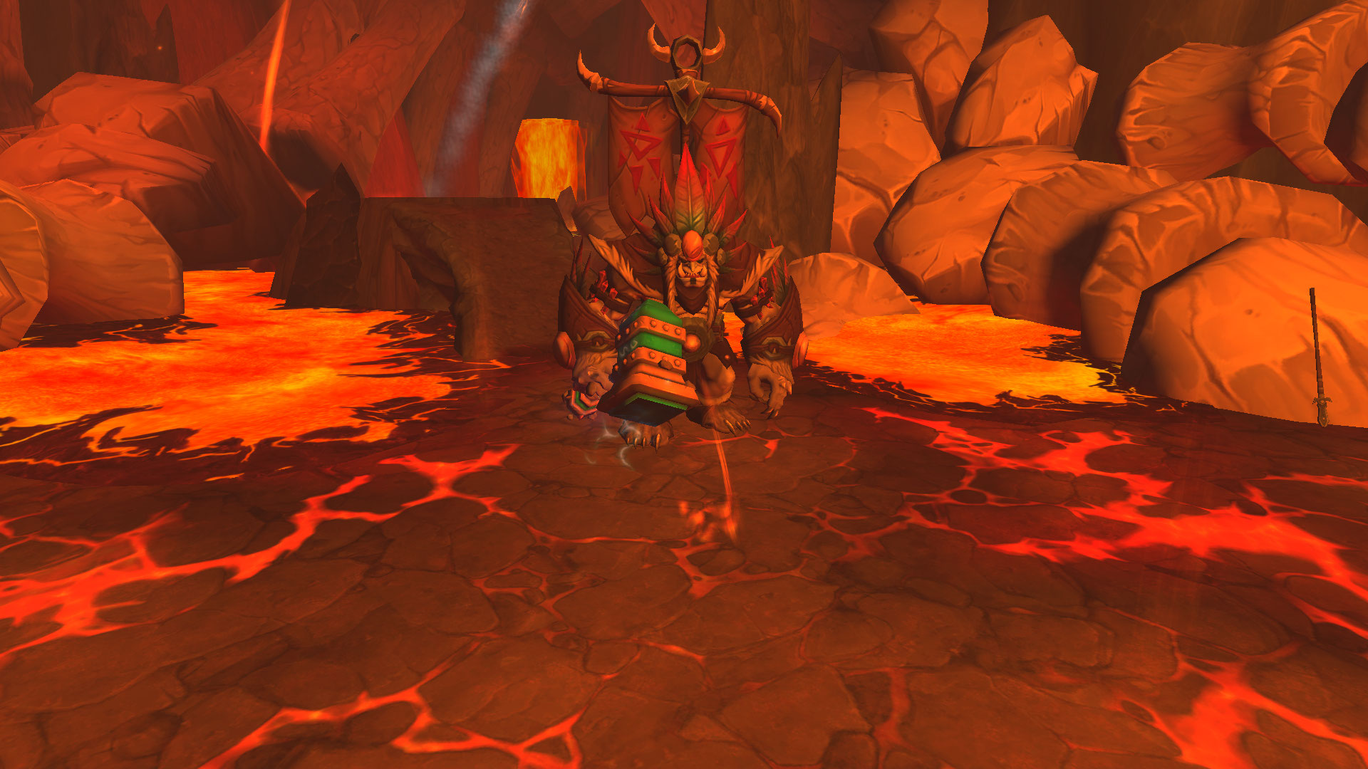 Vague de magma puisque pendant 5 secondes, le boss canalise sa technique pour provoquer une explosion de lave qui inflige des dégâts importants voir mortel sur l'ensemble du groupe. Il est ainsi impératif de se cacher derrière les barrières rocheuses lorsque le boss atteint les 100 points d'énergie pour éviter cet effet. En mode héroïque et supérieur, les pointes ne vous immunisent pas totalement de