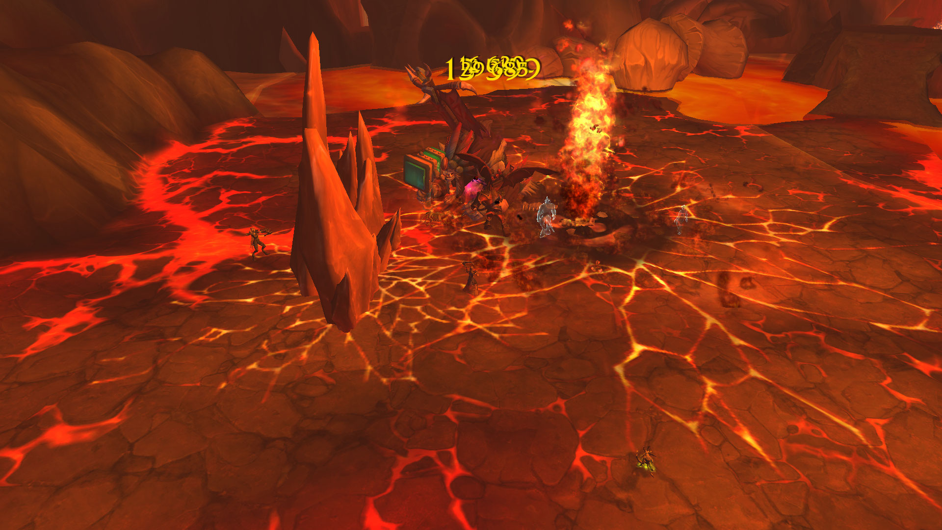 : Le geyser de lave projette des boules de feu qui infligent 34 200 | 34 000 points de dégâts de Feu à des cibles aléatoires toutes les 5 s.