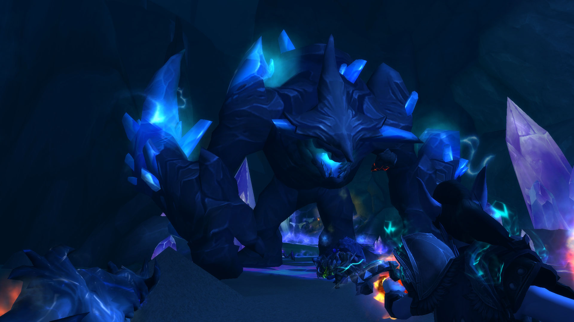 : Le bras du géant balaye l'espace et projette des cristaux qui infligent 462 000 points de dégâts de Nature aux cibles devant le boss.