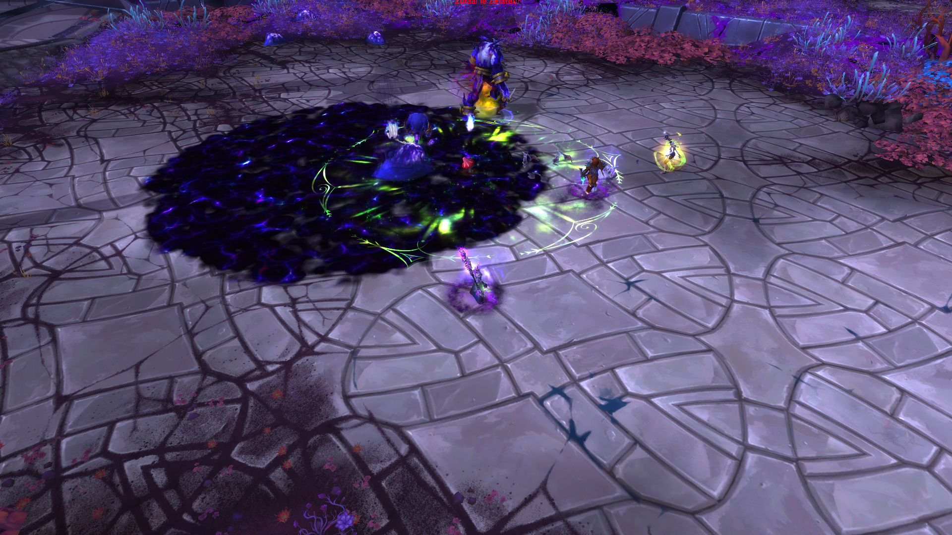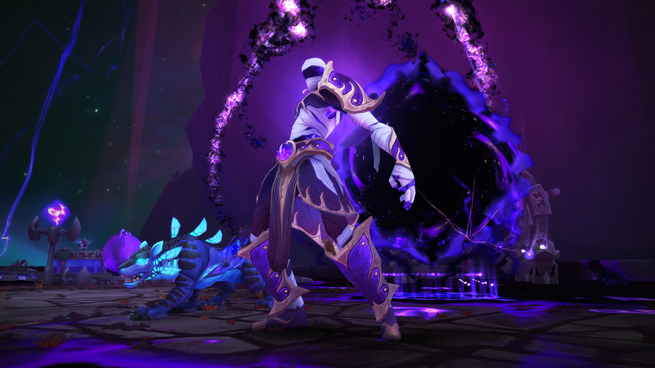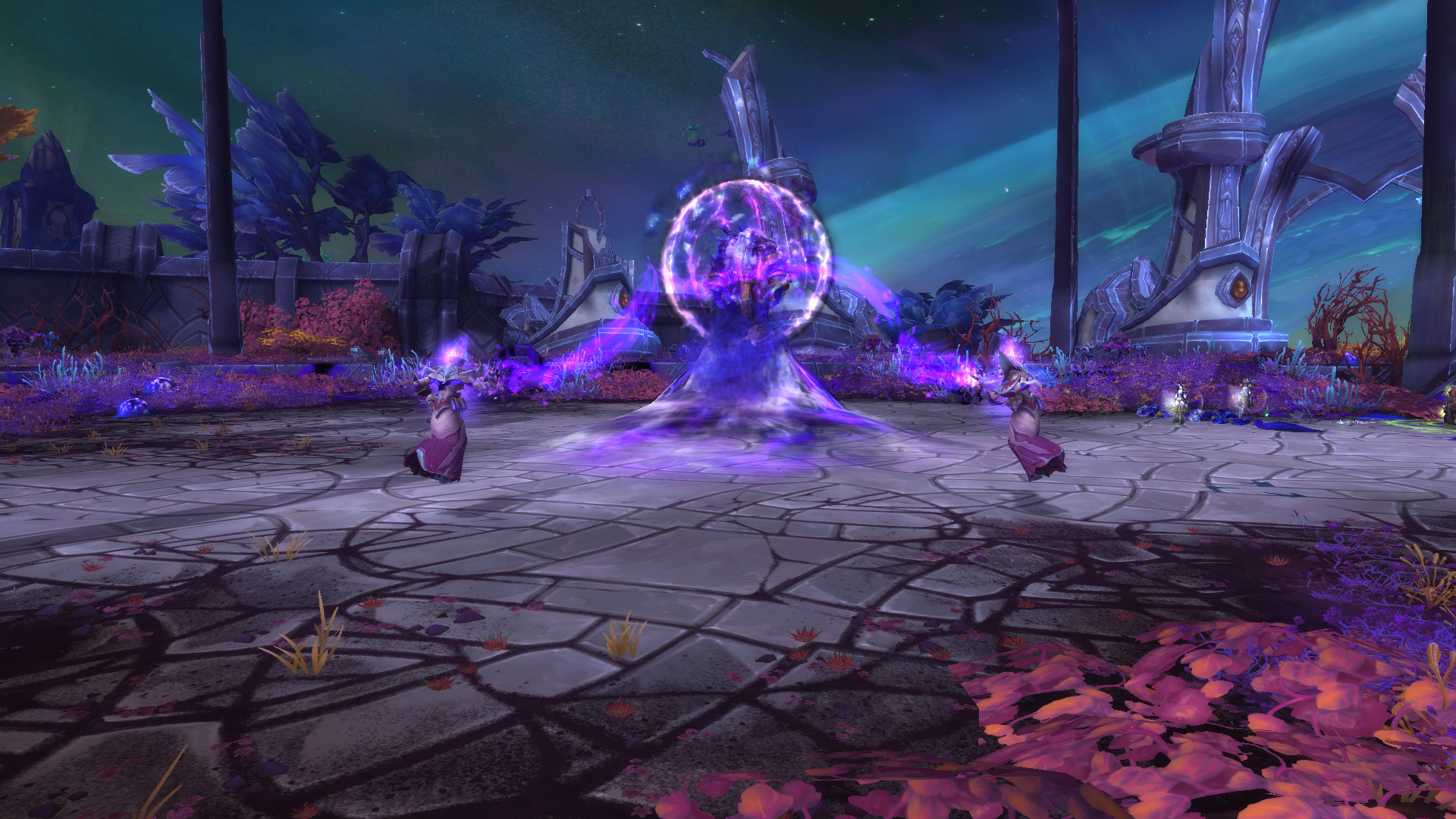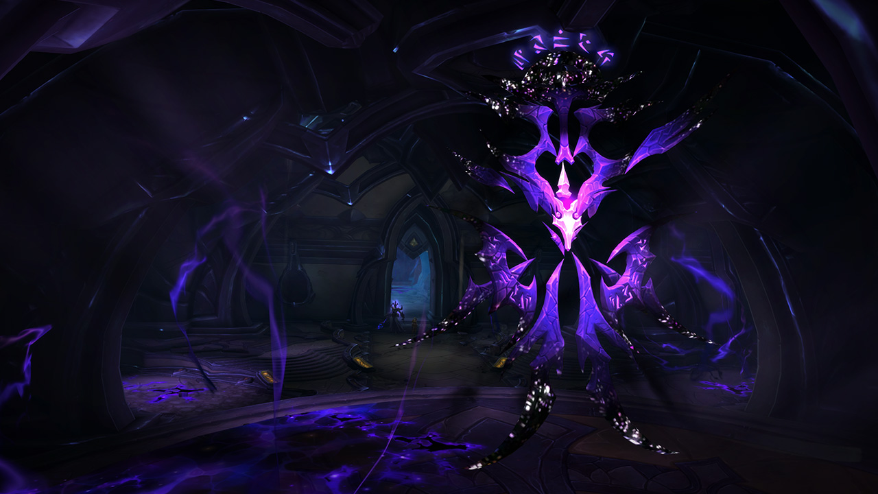 COMMENTAIRE DES DÉVELOPPEURS : En tant qu’environnement, le Siège du triumvirat est plus profondément ancré dans la mythologie de Warcraft que presque n’importe quel autre donjon de ce côté-ci de Karazhan. Lors de la conception de la région Mac’Aree, l’équipe se réjouissait de raconter l’histoire tragique des érédars qui conduisirent Argus à sa perte, et de pouvoir s’éloigner un moment (aussi bien sur le plan visuel que narratif) des démons de la Légion en tant qu’antagonistes principaux. Comme nous l’avons vu il y a bien longtemps au Puits de soleil, la frontière entre l’Ombre et la Lumière est ténue, et des évènements similaires se sont déroulés en ce lieu déserté. Le donjon offre également aux joueurs l’occasion d’en apprendre davantage au sujet d’Alleria Coursevent, et d’assister à des révélations à son sujet…